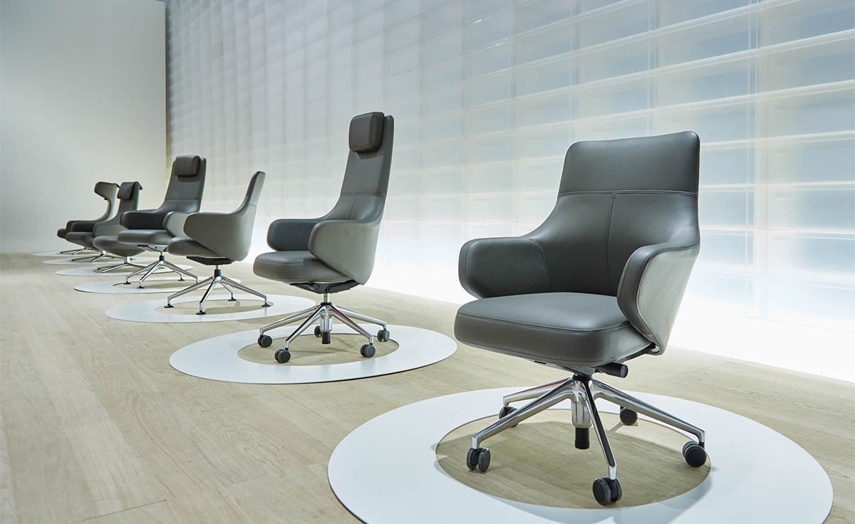 Престижное кресло Grand Conference сочетает мягкую высококачественную кожаную обивку с индивидуально адаптируемым механизмом FlowMotion для исключительного комфорта. Модель производится в двух размерах, один из которых оснащен регулируемой подушкой для шеи и может регулироваться по высоте. В коллекцию также входит кресло с основанием на колесиках. Более подробную информацию и варианты расцветок можно уточнить у менеджера.