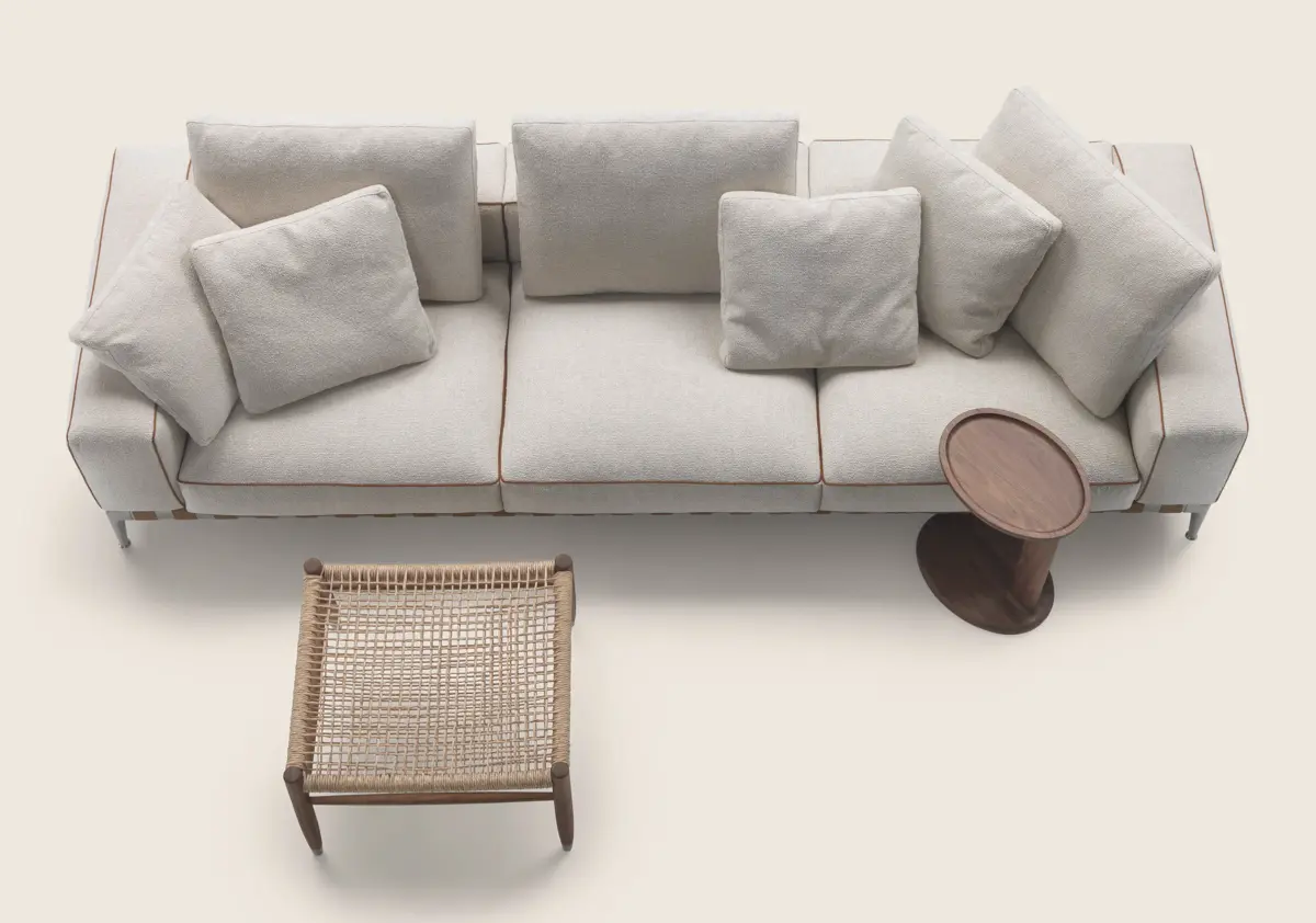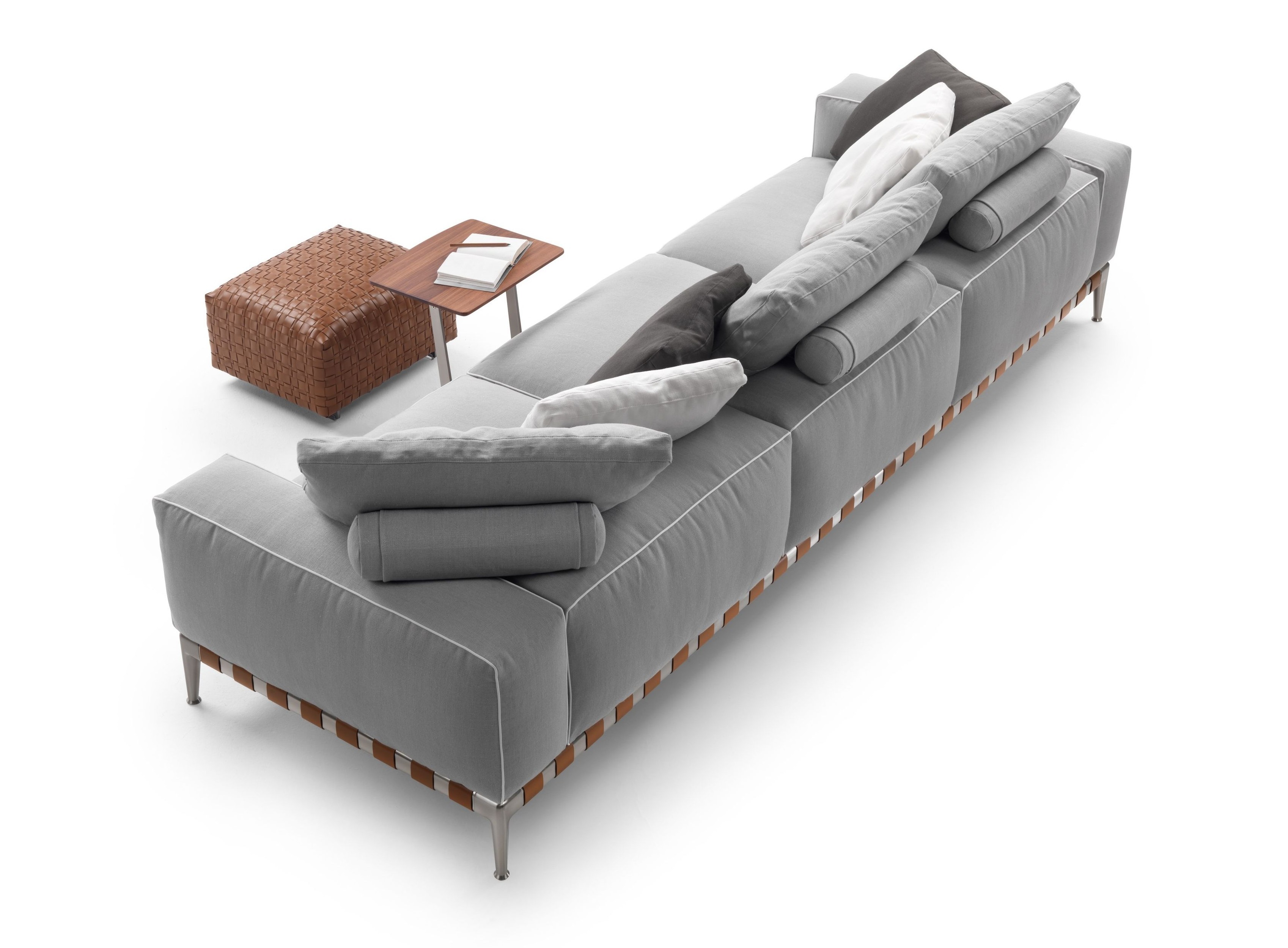 Такая конструкция обеспечивает оптимальную поддержку позвоночника. Она делает отдых или чтение не только приятными, но и полезными для осанки. Металлический каркас и ножки из литого алюминия представлены в различных вариантах отделки. Это позволяет создать гармоничное сочетание с кожаными элементами.