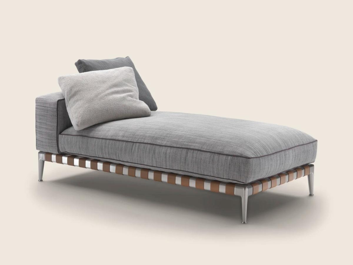 Кушетка Gregory сочетает строгость линий с утонченной эстетикой. Ее дизайн гармонично объединяет современные формы и высокое качество материалов. Металлическое основание отличается четкой геометрией. Эластичные ремни, обтянутые изысканной кожей, добавляют мягкости и благородства.