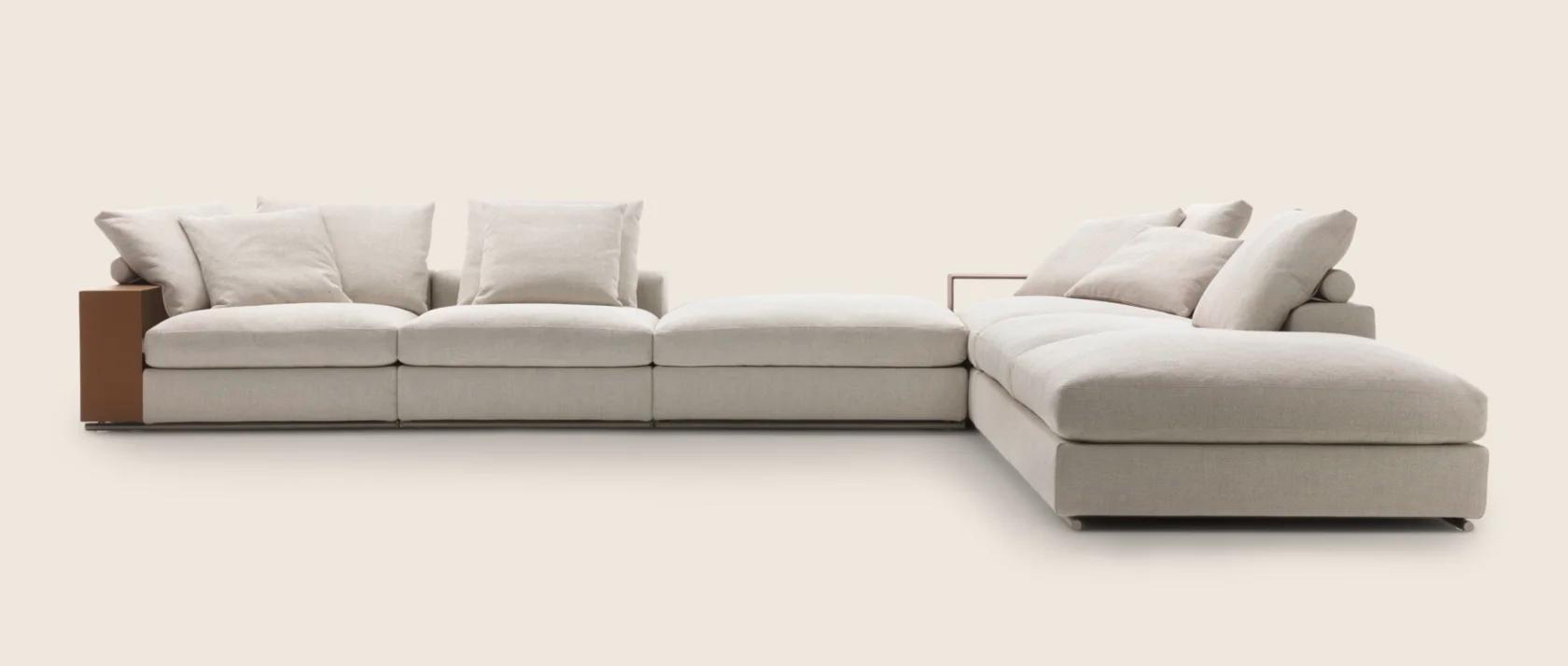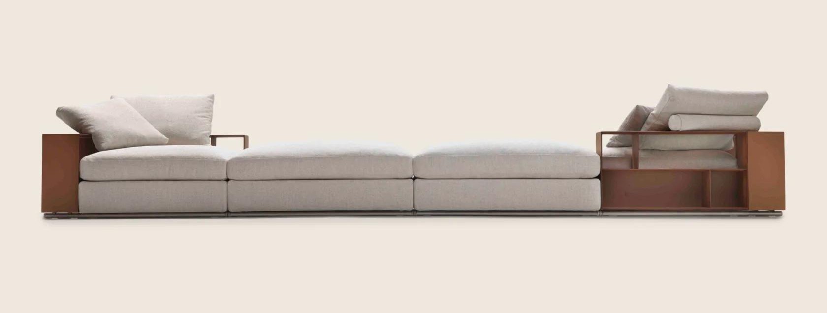 Диван Groundpiece стал настоящим хитом своей коллекции, кардинально преобразовав представление о классическом диване. Инновационный подход к дизайну позволил создать изделие с новыми пропорциями и формами: диван отличается низкой посадкой и глубиной, что способствует более расслабленной и свободной посадке. Это воплощение максимального комфорта, усиленное мягкими подушками, наполненными гусиным пухом — материалом премиум-класса, который обеспечивает непревзойденное ощущение мягкости и уюта. В качестве альтернативы предлагается также наполнитель из дакрона, что делает этот диван еще более универсальным выбором.