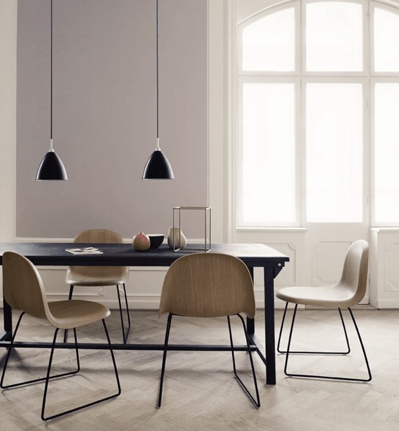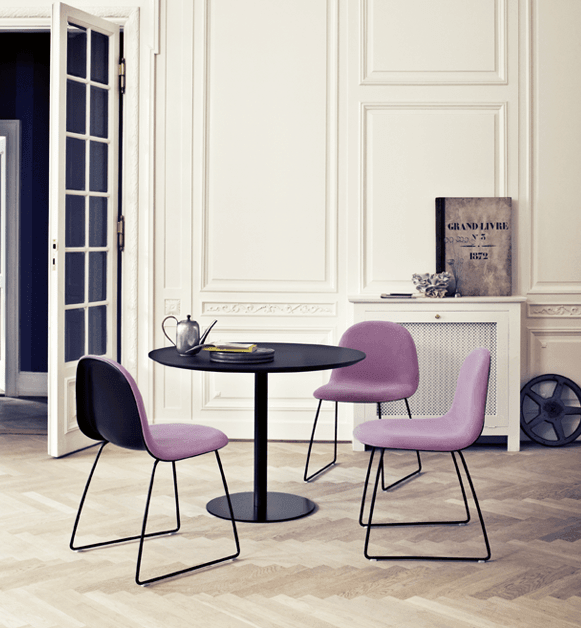 Стул является частью GUBI Chair Collection, состоящей из стульев из гнутой древесины или пластика и столов. Толщина сиденья – 5 мм. В коллекции есть стулья с обивкой передней части сиденья и полностью в обивке из ткани или кожи. База: хромированная, матовая или окрашенная в черный цвет сталь, дерево. Некоторые стулья из этой серии штабелируются и оснащаются ручками. Эта модель также производится в барной и лаунж версиях. Спроектирован студией Komplot Design в 2003 году. Является частью постоянной экспозиции Музея современного искусства в Нью-Йорке. Высота сидения 45 см.