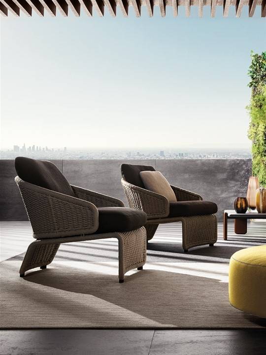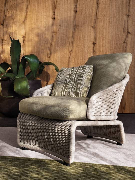 Коллекция Halley Outdoor от бренда Minotti включает в себя диваны, кресла и шезлонги для улицы. Каркас кресла Halley изготавливается из металла. В качестве отделки подлокотников и ножек применяется тканевый плетеный шнур. Доступно несколько вариантов цвета обивки. В качестве мягкого наполнителя применяется пенополиуретан. Обивка сидения и спинки — ткань. Кресло можно использовать на улице, благодаря использованию специальных влагостойких материалов.
