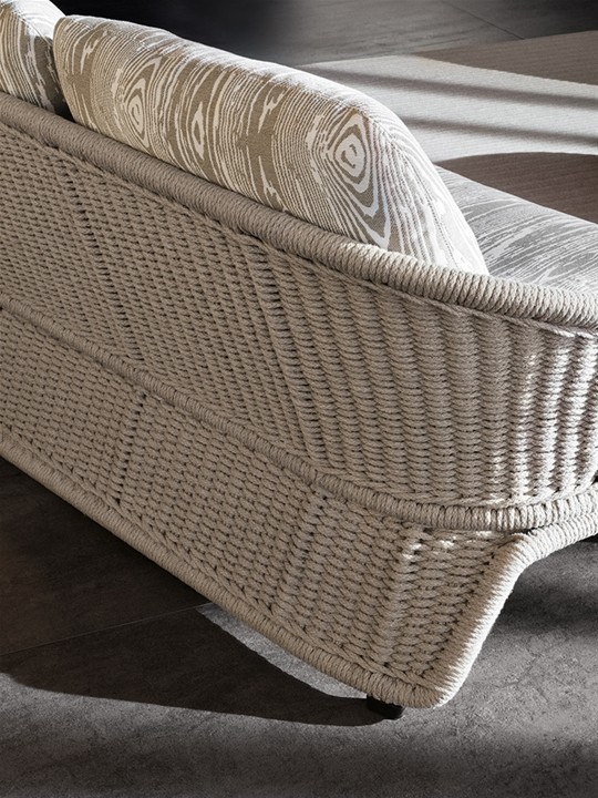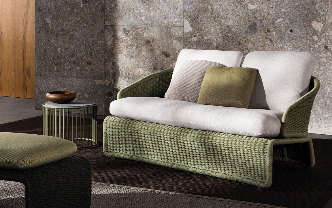 Коллекция Halley Outdoor от бренда Minotti включает в себя диваны, кресла и шезлонги для улицы. Каркас дивана Halley Outdoor изготавливается из металла, который проходит три стадии обработки. В качестве отделки подлокотников и ножек применяется тканевый плетеный шнур, который представлен в разных оттенках. Наполнителем является пенополиуретан. Обивка дивана доступна в различной цветовой гамме и может быть выполнена из ткани. Диван можно использовать на улице, благодаря использованию специальных влагостойких материалов.
