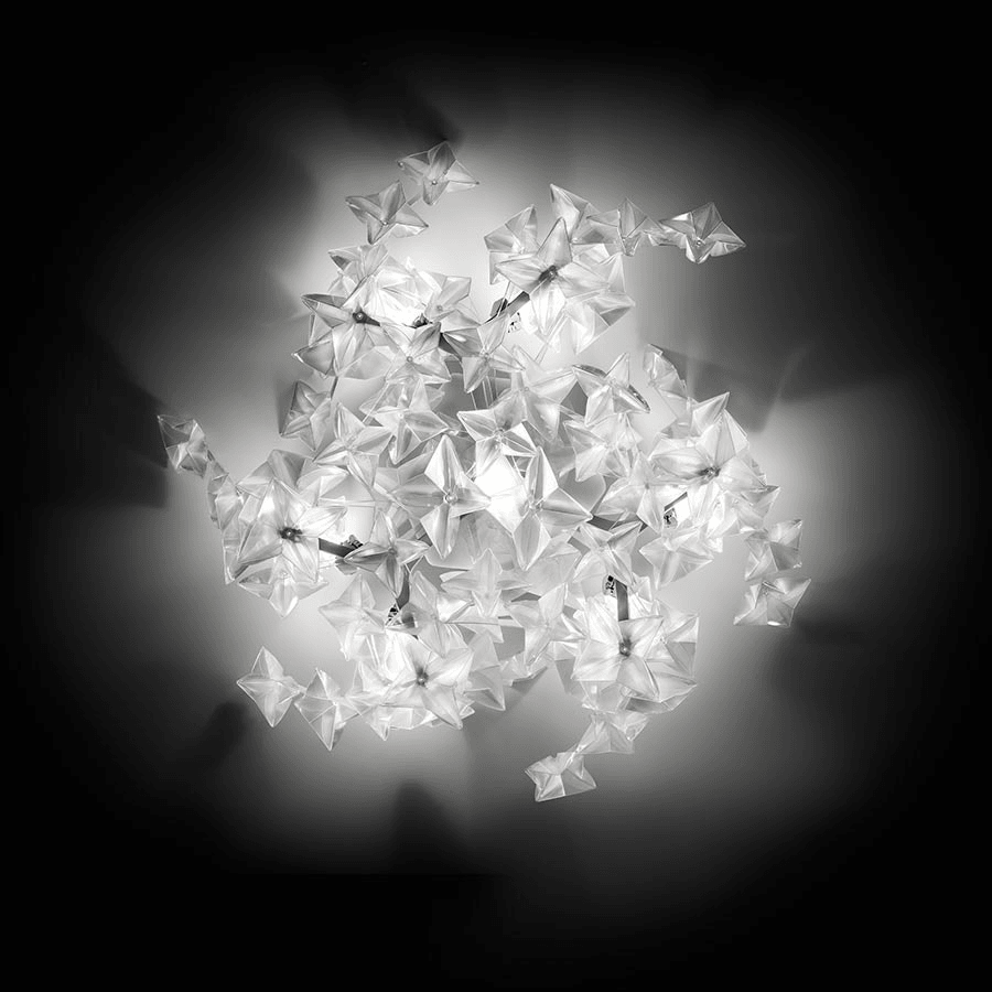 Уникальный светильник Hanami Ceiling/wall создаёт нежные цветные преломления, которые завораживают и придают интерьеру особую атмосферу. Каждый элемент светильника изготавливается вручную, что придаёт ему особую ценность и неповторимость.