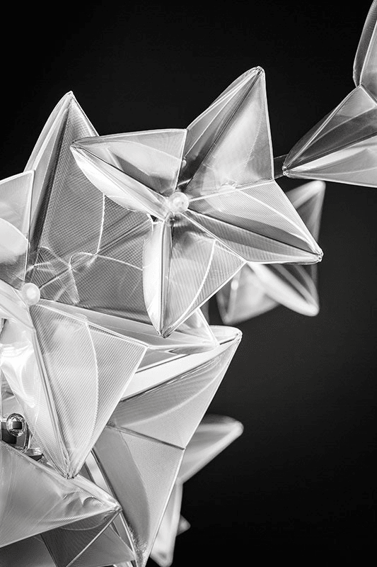 В основе светильника лежит роскошный материал Lentiflex®, который воссоздаёт бриллиантовые отражения. Благодаря этому, светильник не только освещает помещение, но и становится настоящим произведением искусства, которое притягивает взгляд и вызывает восхищение.
