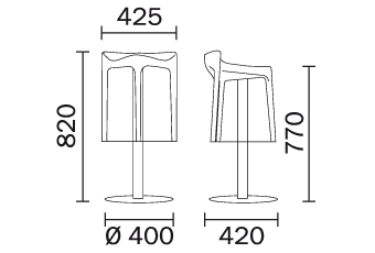 Коллекция Happy включает в себя необычные барные стулья и табурет. Основание барных стульев представлены в двух вариантах: на четырех ножках или со стальным основанием на одной ножке. Сидение стула Happy изготавливается из полипропилена в различных цветах. Основание и подставка для ног выполняются из сатинированной стали. Детали о данной модели уточняйте у менеджеров или в PDF инструкции.