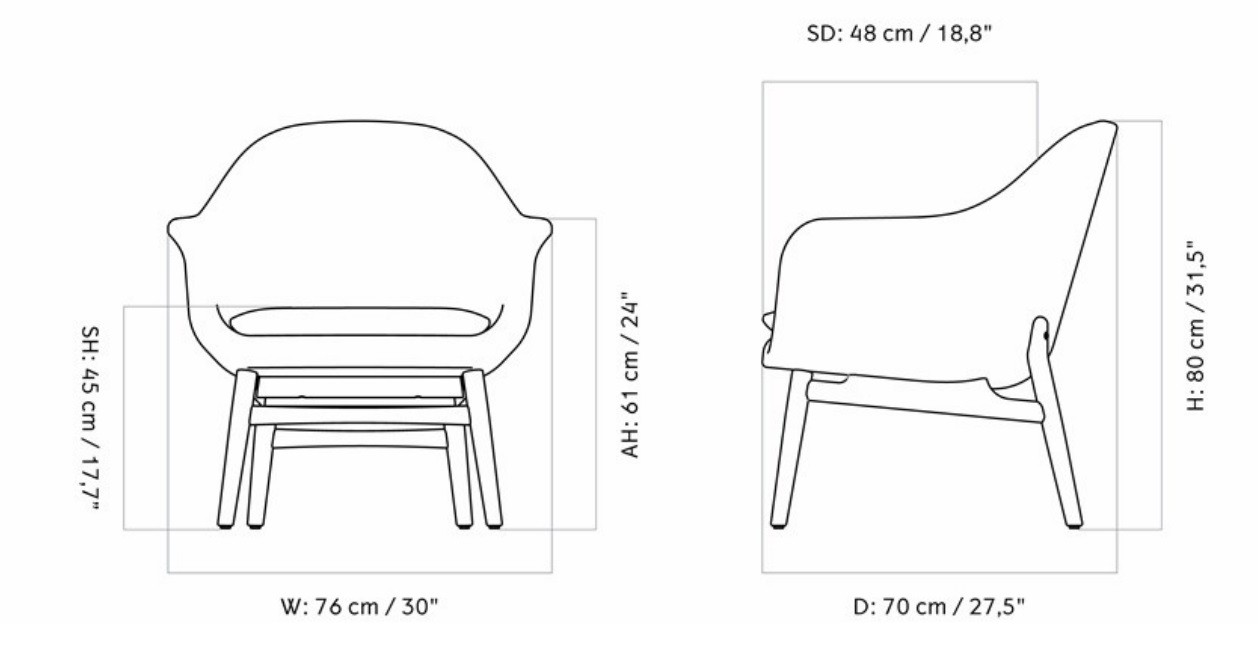Габариты кресла тщательно продуманы для обеспечения максимального комфорта. Высота (H) 80 см, ширина (W) 76 см и глубина (D) 70 см создают идеальное пространство для отдыха и релаксации. Высота сиденья (SH) 45 см обеспечивает удобную посадку, а глубина сиденья (SD) 48 см позволяет комфортно расположиться в кресле. Кроме того, высота подлокотников (AH) 61 см обеспечивает оптимальную поддержку рук, снимая напряжение с плеч и шеи. Таким образом, каждая деталь кресла HARBOUR LOUNGE CHAIR направлена на создание максимального комфорта и удобства.