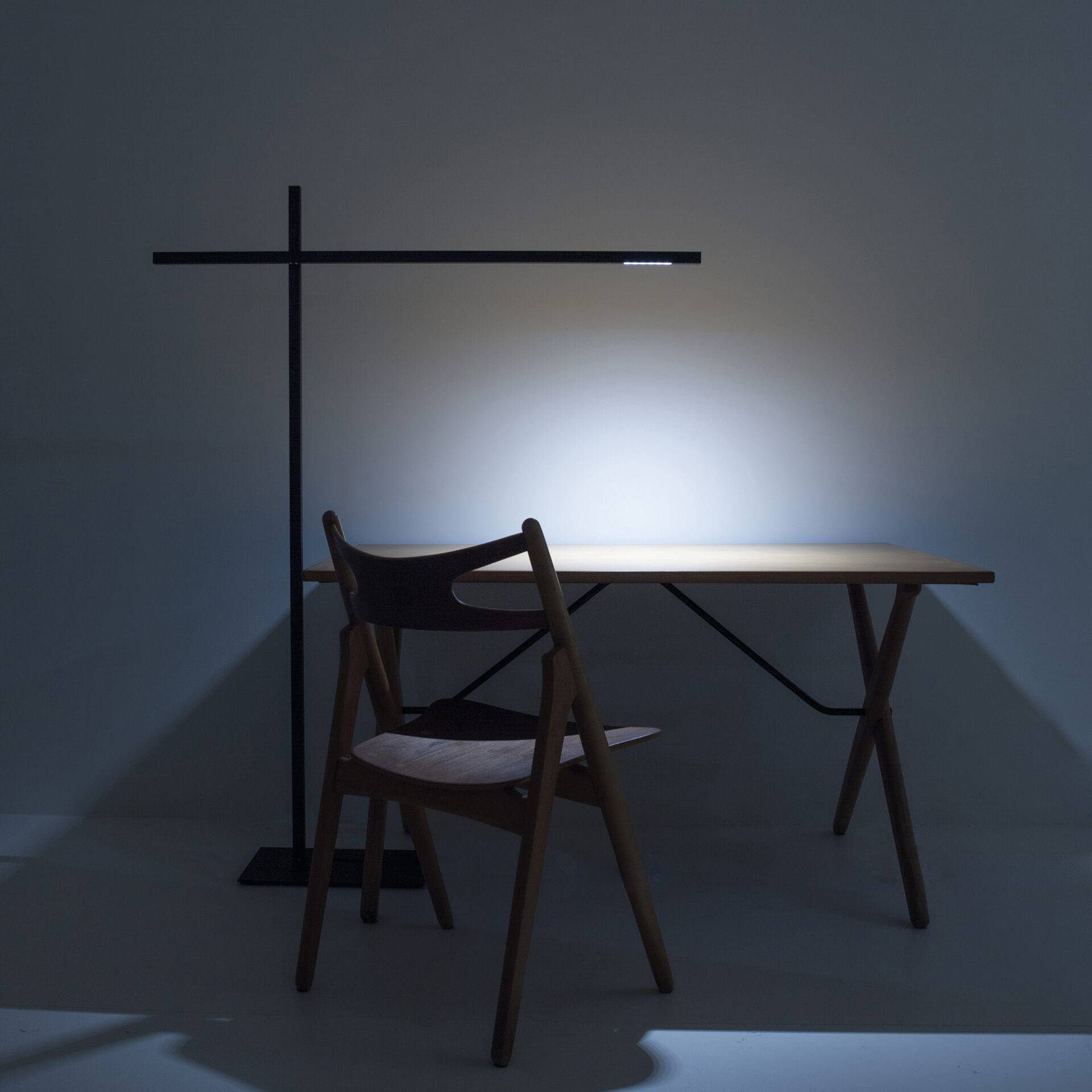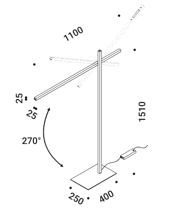 Особенностью конструкции торшера является точка поворота между двумя планками, которая позволяет изменять их положение. Это не только регулирует направление света, но и создаёт выразительные графические эффекты, превращая светильник в арт-объект. Hashi способен преобразить пространство, добавив ему динамики и интереса.