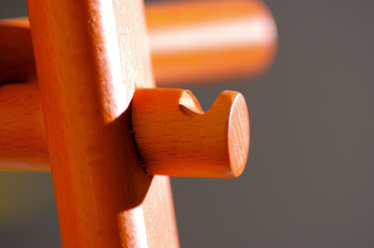 Изюминкой элегантной вешалки HCB является шпунтовое соединение. Комплексный, строгий и линейный дизайн включает в себя три пары прямоугольных элементов, расположенных почти горизонтально. Эффект легкого наклона обеспечивает взаимосвязь и баланс всех структурных элементов. nВешалка HCB доступна в следующих цветах: белый, оранжевый, желтый, светлое дерево.