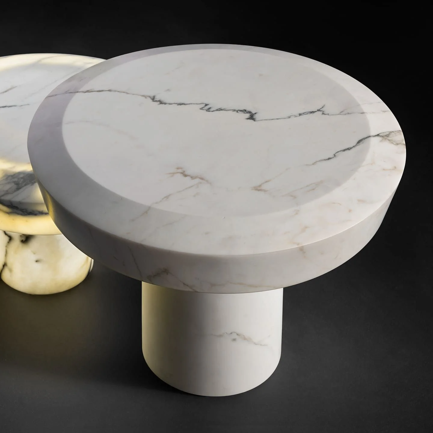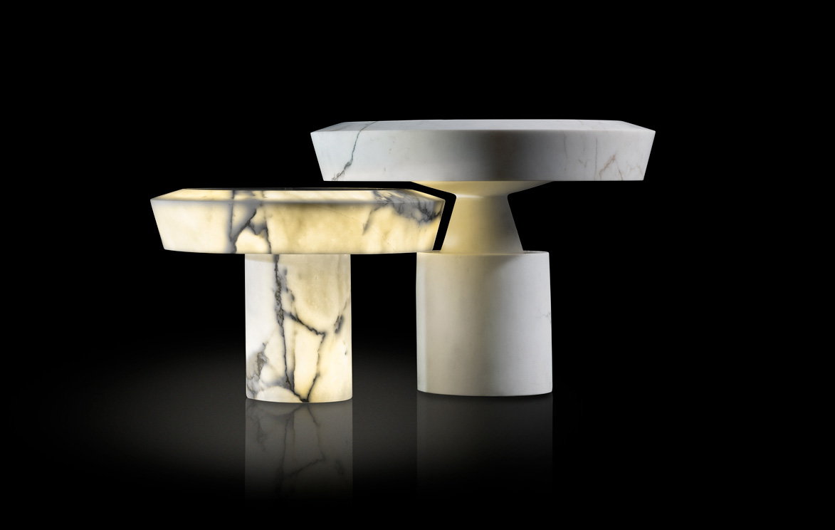 Свет и камень вступают в гармоничное взаимодействие, создавая атмосферу уюта и элегантности. Искусно обработанные каррарские блоки мягко излучают свет, раскрывая неожиданные текстуры и прожилки. Столики He-She, выполненные из этого благородного материала, добавляют изысканности любому пространству, подчеркивая его уникальность. Они становятся не просто функциональными элементами, а настоящими произведениями искусства, воплощающими идею равенства и гармонии.