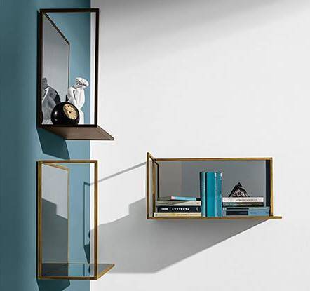 Полка Helia изготавливается из бронзового или дымчатого зеркала. Рамка изготавливается из полированного металла в латунном или коричневом цвете. Полочка доступна в двух размерах. Детали о данной модели уточняйте у менеджеров или в PDF инструкции.
