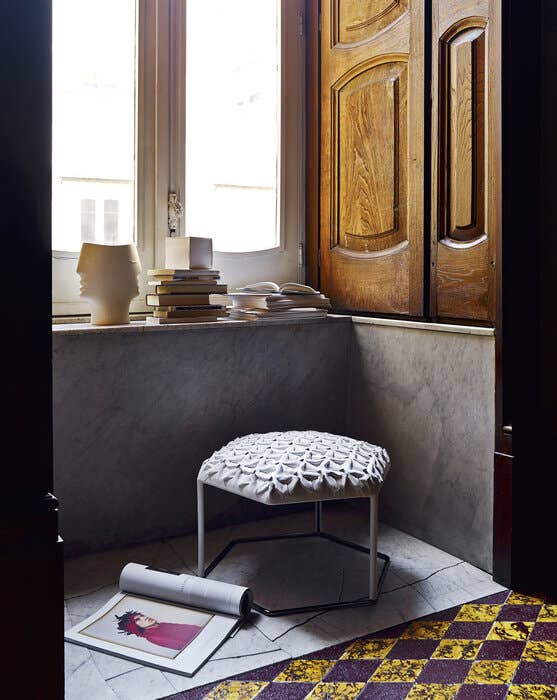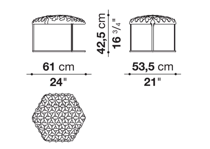 Игра света и тени на поверхности Hive напоминает о природной гармонии и красоте. Пуфик выглядит стильно и современно, но при этом сохраняет естественность и природное очарование. Его форма и текстура создают ощущение лёгкости и воздушности, а также добавляют пространству глубины и объёма.