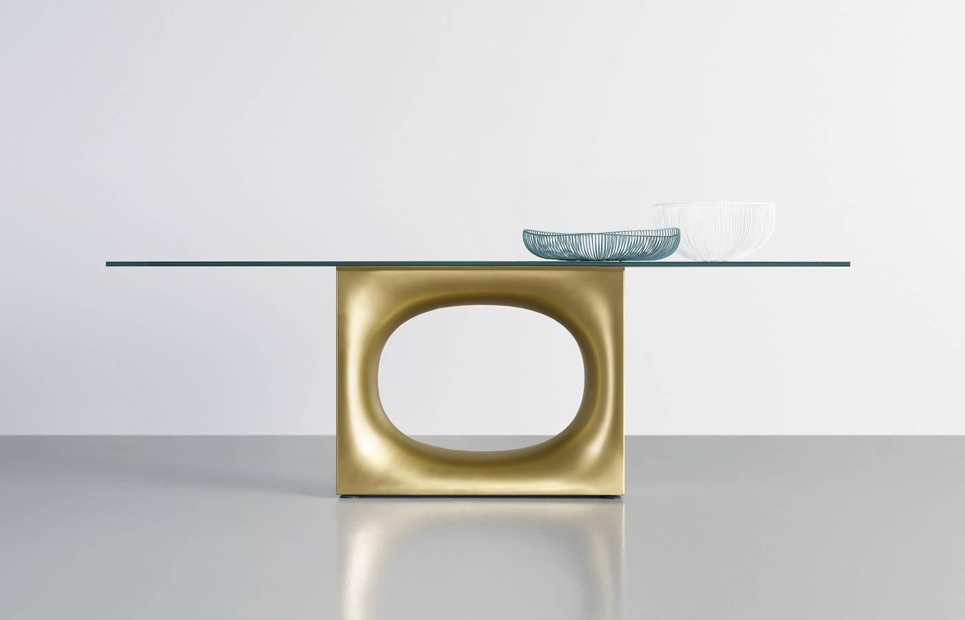 Основание стола Holo изготавливается из металла и окрашивается в четыре варианта цвета: белый, серый, черный или латунный. Столешница выполняется в трех вариантах материала: дерево, стекло или Fenix-NTM. Доступно несколько размеров, отличающихся длиной. Детали о данной модели уточняйте у менеджеров или в PDF инструкции.
