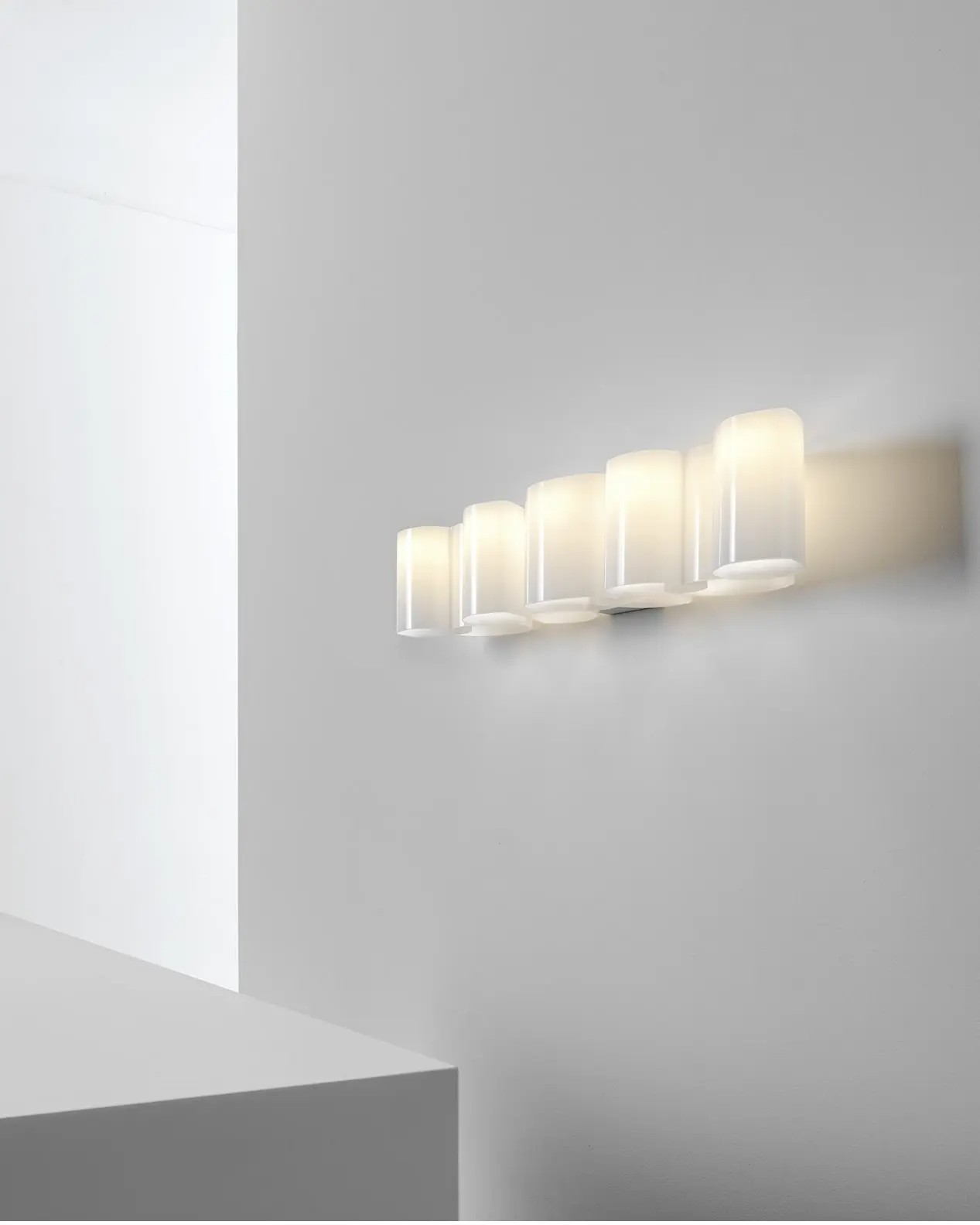 Honey Wall — это стильный настенный светильник, состоящий из отдельных модулей, формирующих единую художественно-пространственную композицию. Доступный в двух версиях — три или девять модулей, этот светильник придает комнате современный шарм и зрительно упорядочивает пространство. Элегантные волнообразные рассеиватели из прозрачного опалового пластика создают мягкий, приятный глазу свет, играя тенями и оттенками, придавая интерьеру глубину и объем.