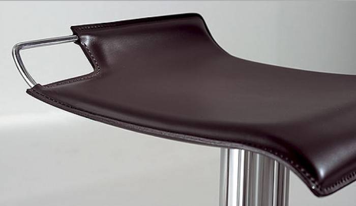 Hoppy — дизайнерский барный стул с обивкой из натуральной кожи. Основание стула изготовлено из хромированной стали. Модель поддерживает возможность регулировки по высоте от 57 до 82 см и оснащена удобной подставкой для ног. Возможные цвета обивки можно уточнить у менеджера.