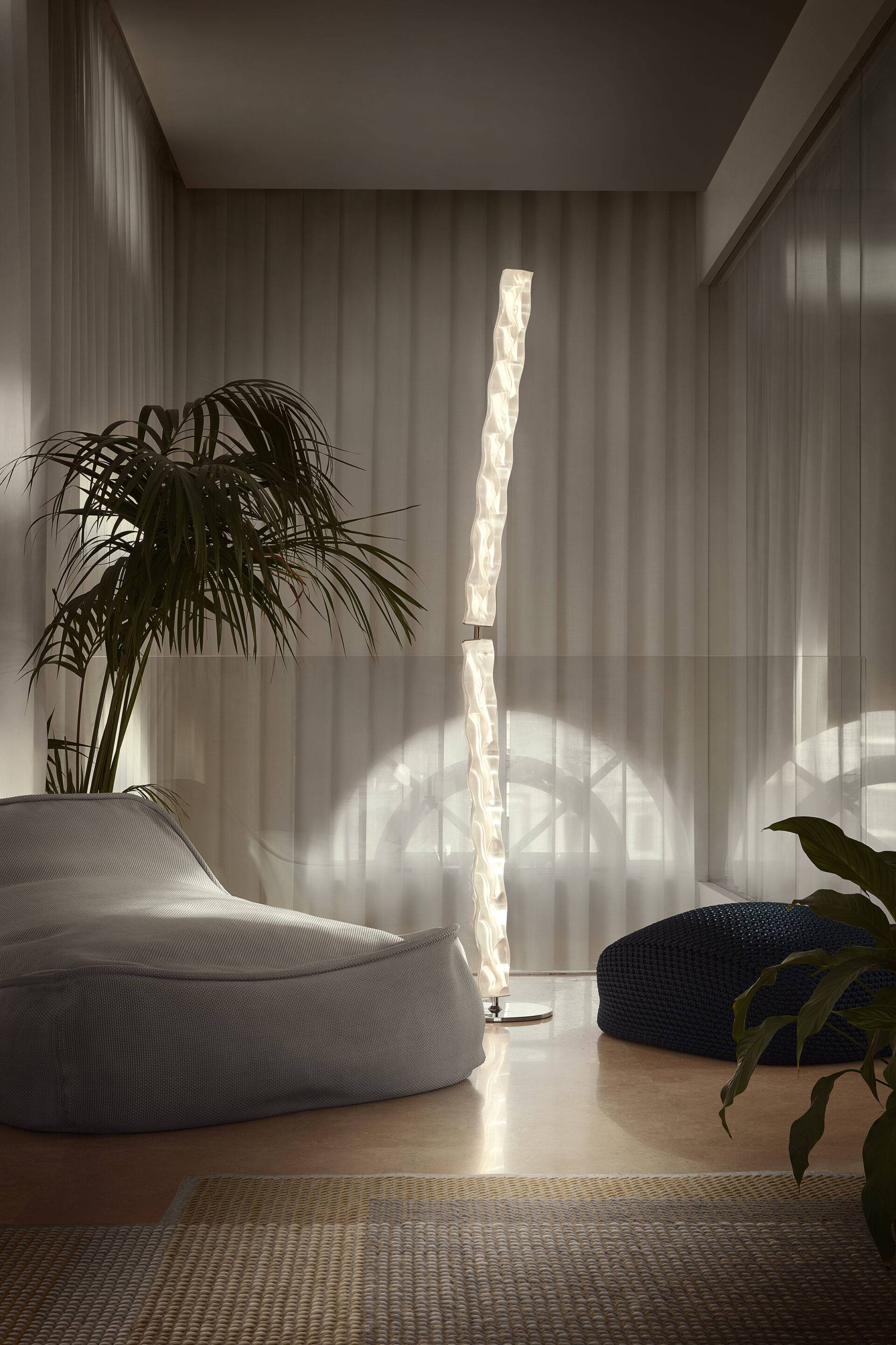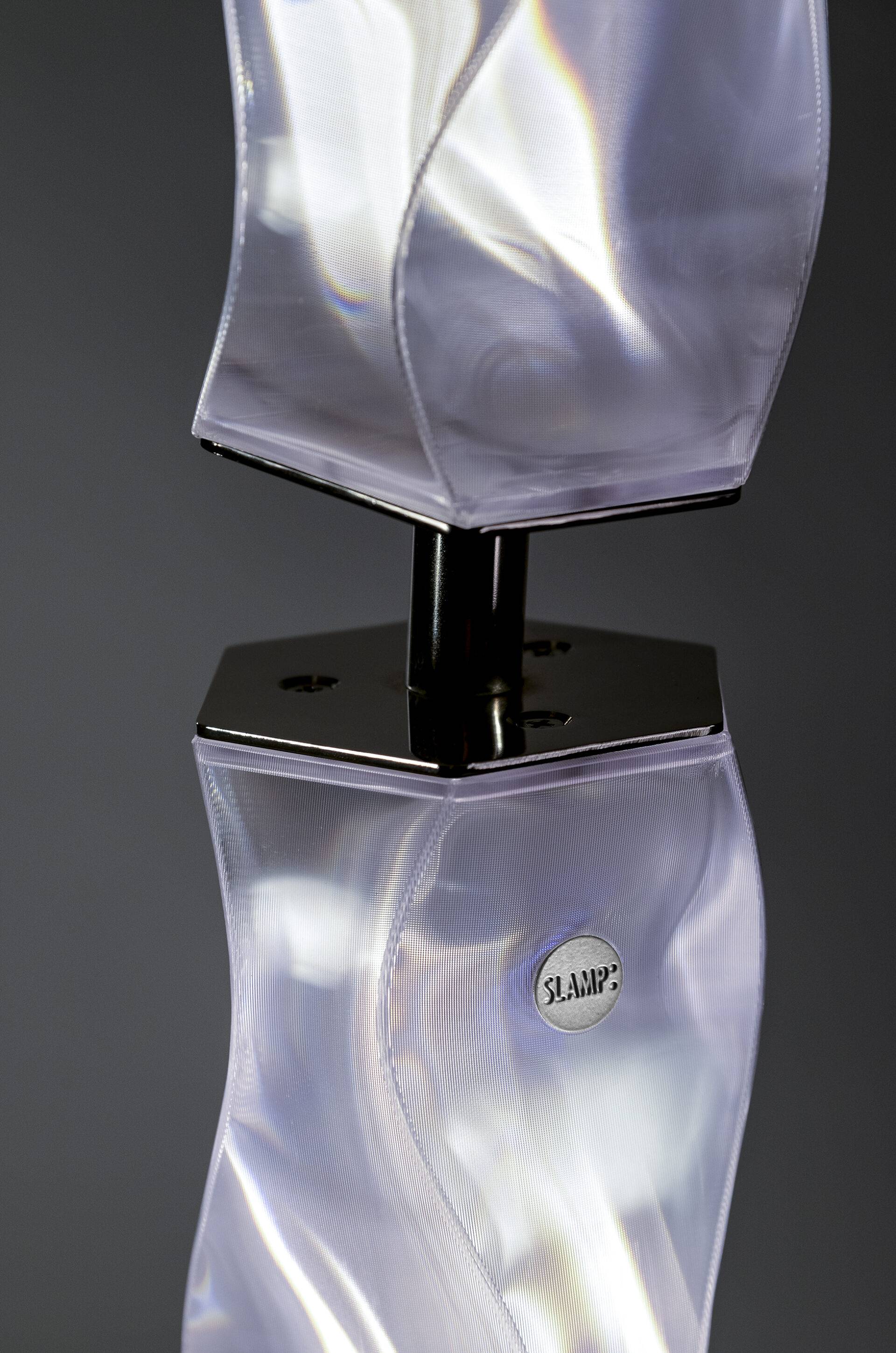 Hugo Floor отличается использованием материала Lentiflex® от Slamp. Этот гибкий и прозрачный материал придает светильнику легкость и воздушность. Lentiflex® создает эффект парящих в пространстве светодиодных модулей, которые мягко рассеивают свет. Модули обеспечивают равномерное и комфортное освещение. Материал также устойчив к ультрафиолетовому излучению, что сохраняет внешний вид торшера на долгие годы.