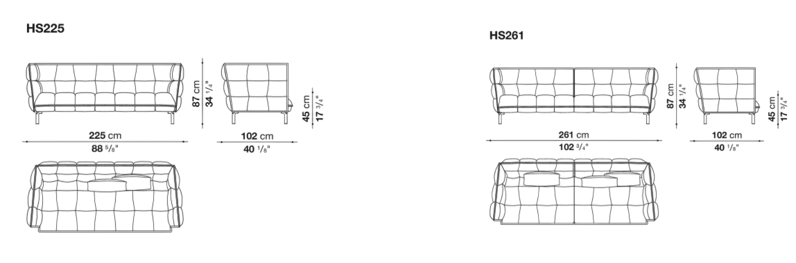 Диван доступен в двух размерах: компактном и увеличенном, что позволяет подобрать оптимальный вариант для любого пространства. Независимо от выбранного размера, Husk-Sofa не выглядит громоздким благодаря изящной отделке опор, которая может быть выполнена из различных материалов, таких как дерево, металл или стекло. Это придаёт дивану современный и стильный вид, который легко впишется в любой интерьер.