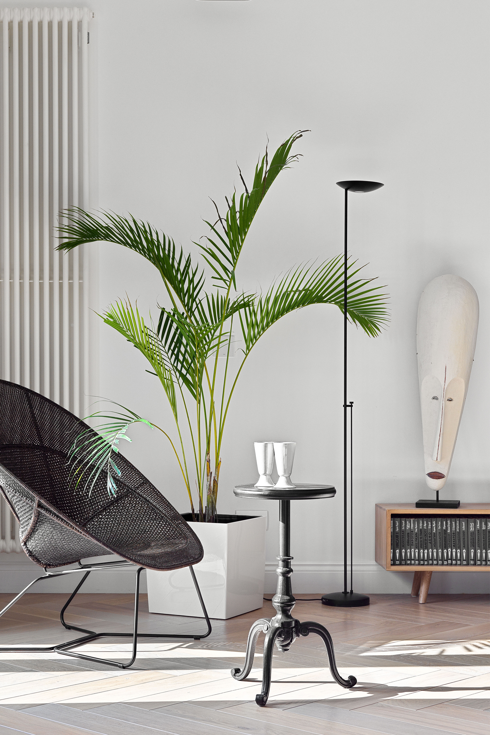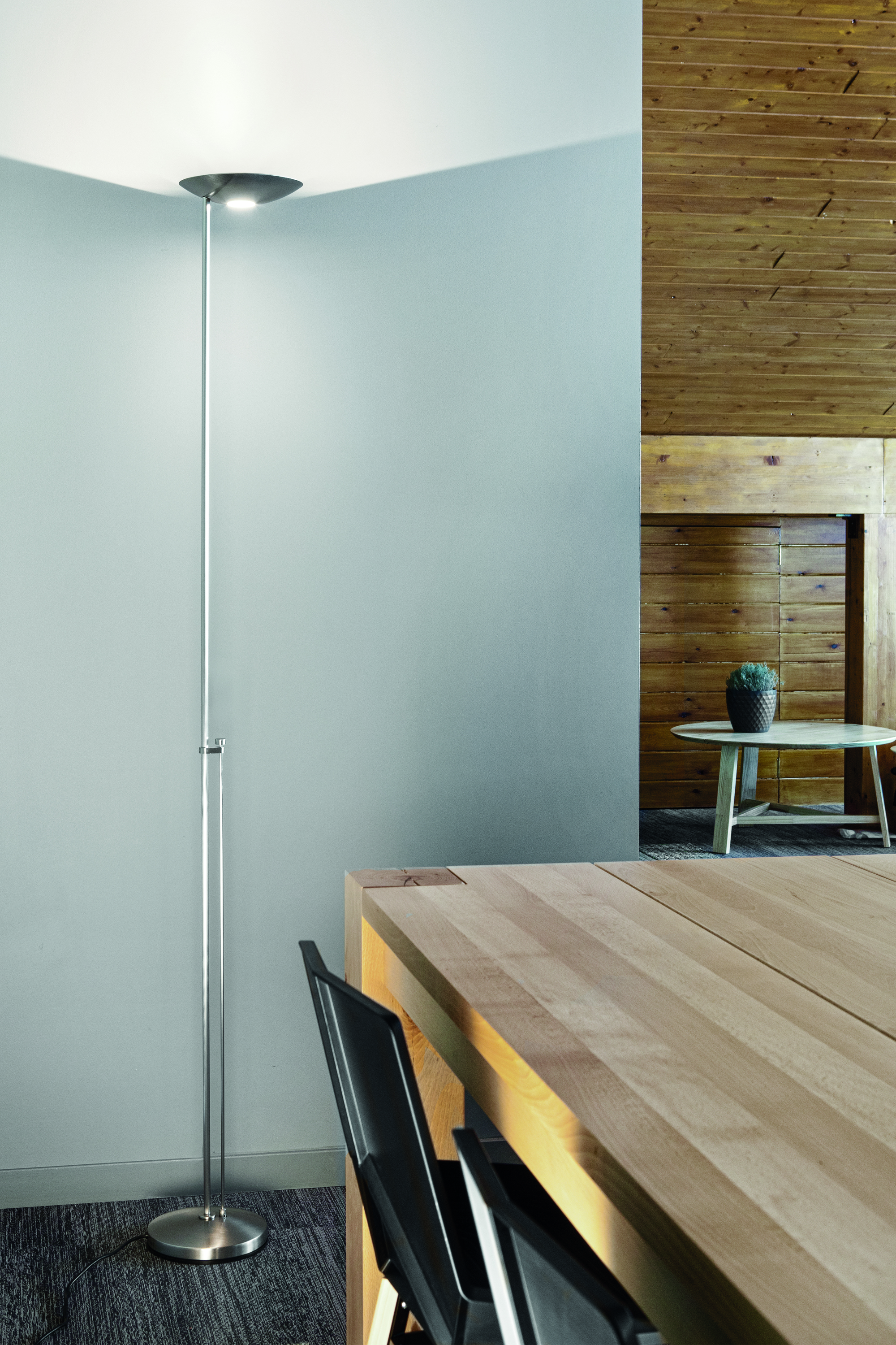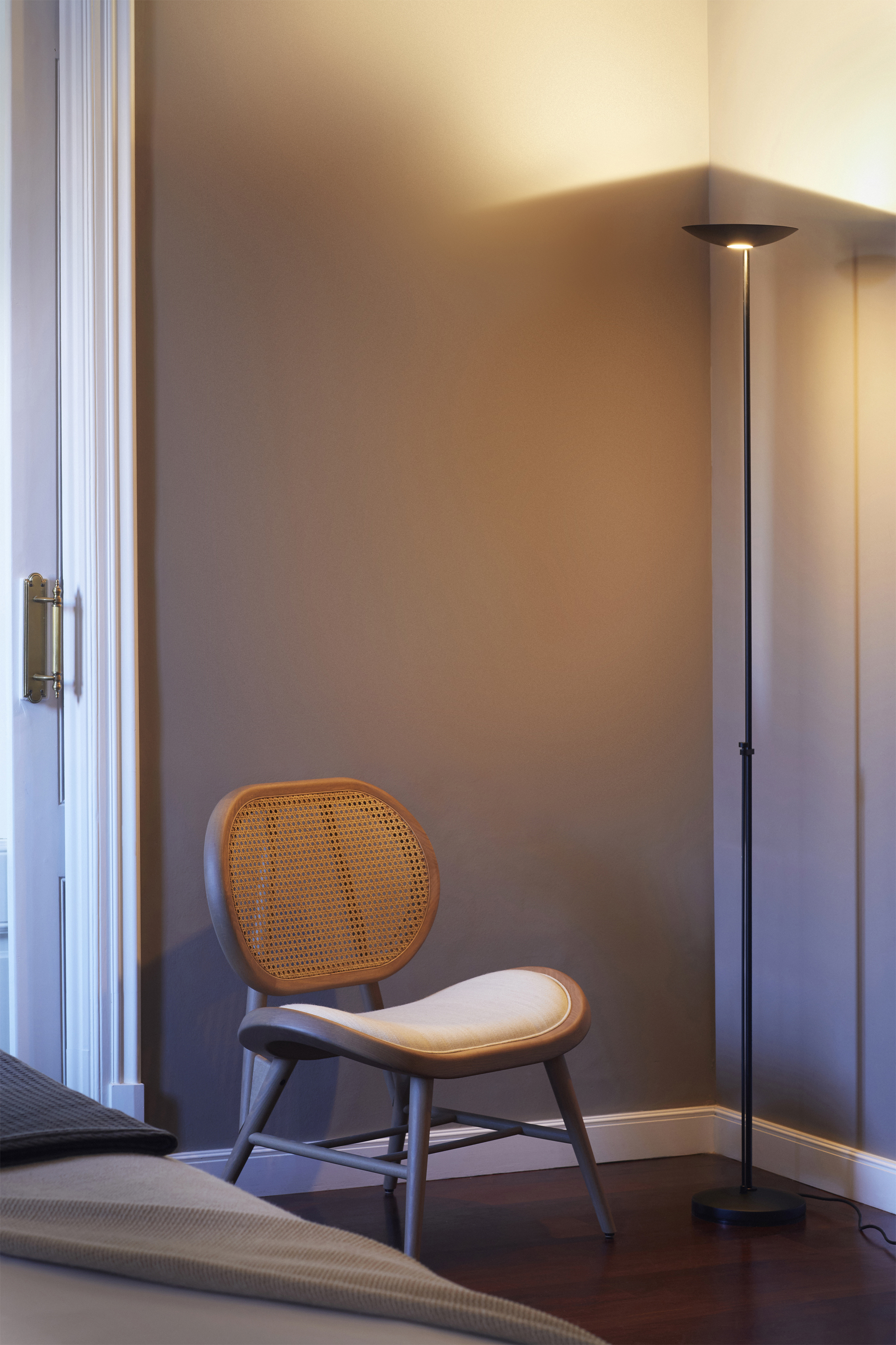 Торшер Icons Floor оснащён галогенной лампой с регулятором яркости. Она расположена на уровне сидящего человека, что обеспечивает удобство использования. Благодаря этой особенности торшер подходит для создания многоуровневого освещения. Вы можете регулировать интенсивность света в зависимости от настроения и потребностей. Прибор также совместим со светодиодными лампами, что даёт дополнительные возможности для настройки освещения.