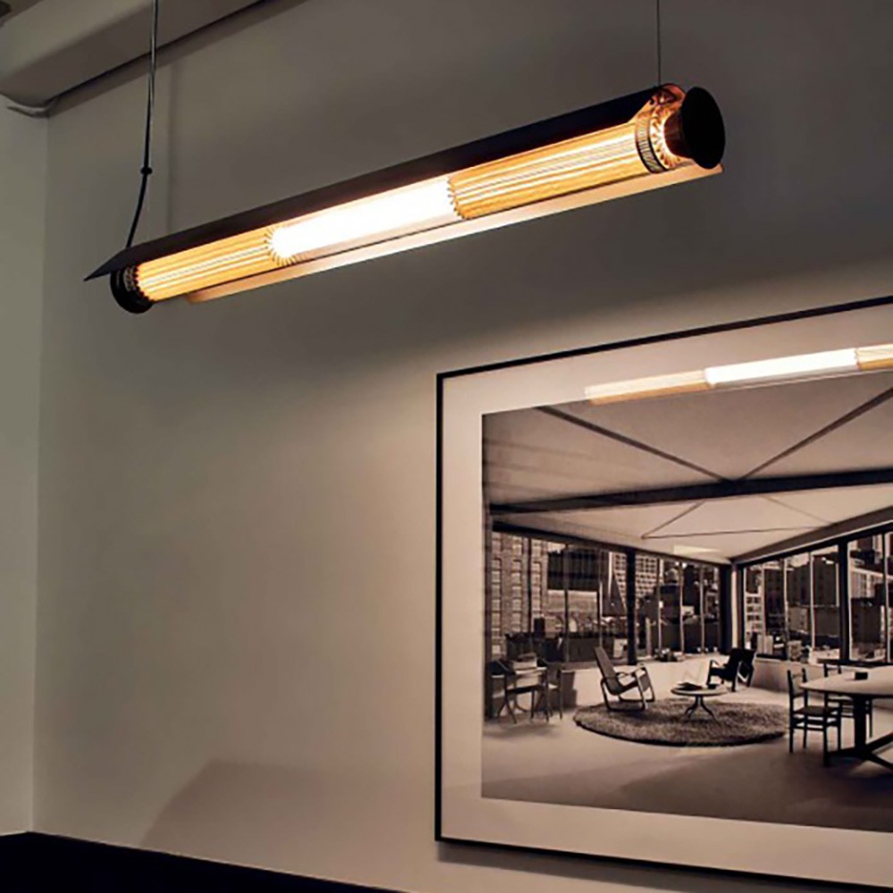 Подвесной светильник In The Tube 360° Pendant Horizontal with wing создан дизайнерами Домиником Перро и Гаэль Лорио‑Прево. Это стильная горизонтальная подвеска, которая удачно сочетает индустриальный стиль и практичное освещение.