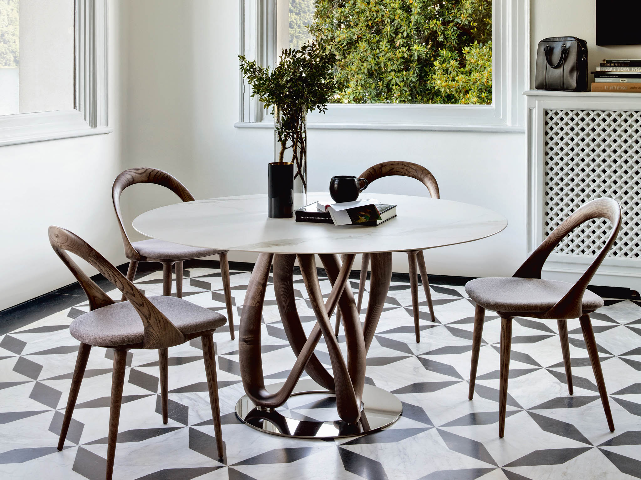 Infinity элегантно обставляет обеденные гарнитуры, представленные в коллекции обеденных стульев Porada. Этот предмет мебели создан, чтобы служить долгое время и стать значимым акцентом в интерьере, добавляя ему утончённость и функциональность.