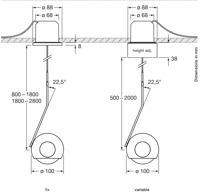 Версия светильника io sospeso fix - длина кабеля 80-180 см регулируется во время монтажа.