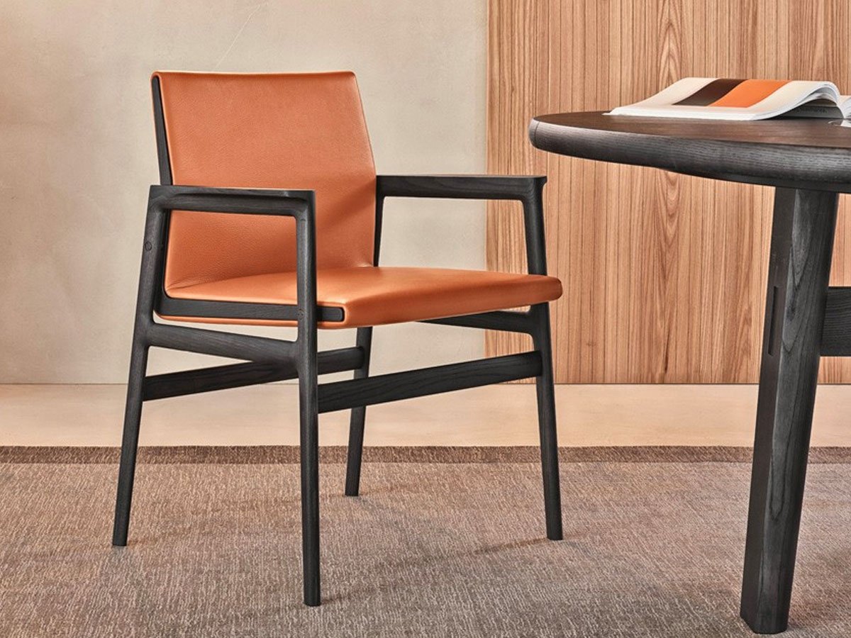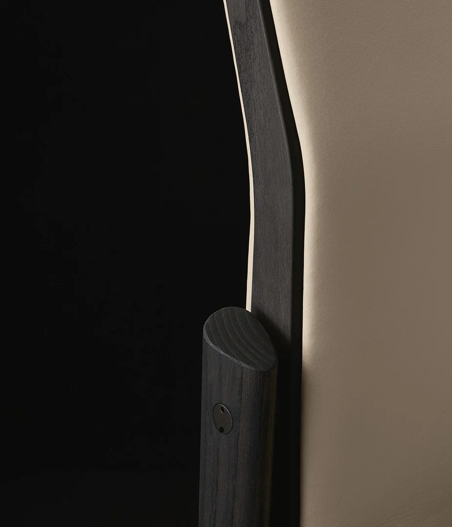 Особое очарование Ipanema раскрывается в версии без обивки, где тончайшая кожа ручной работы обволакивает спинку, повторяя ее изгибы. Этот прием не только добавляет визуальной легкости, но и создает дополнительный комфорт, делая посадку еще более приятной. Игра фактур – гладкой кожи и теплого дерева – придает стулу динамичность, а его силуэт становится выразительнее, подчеркивая изысканность линий.