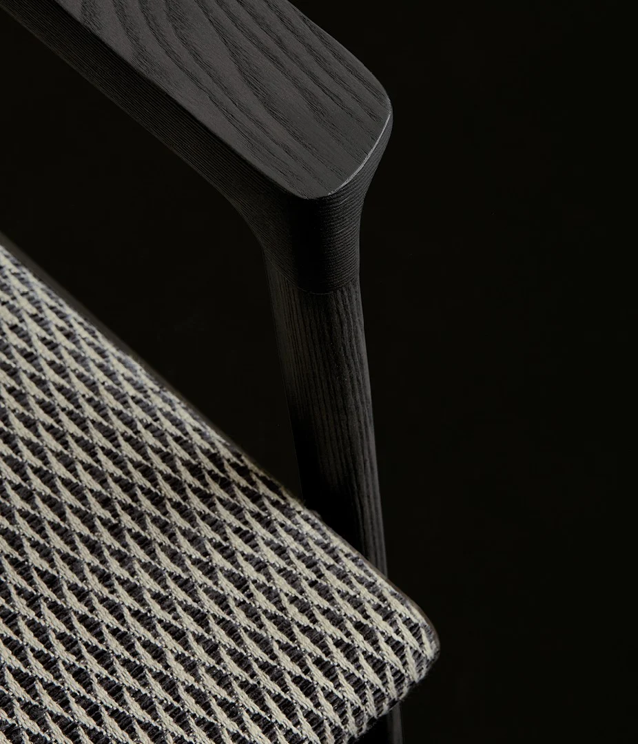 Его конструкция, выполненная из натурального дерева, излучает природную текстуру и благородство материала. Модель можно дополнить подлокотниками, которые придадут ей более камерный и уютный характер, или же оставить строгой и лаконичной версии без них. Модель можно дополнить подлокотниками, чтобы придать ей более уютный и домашний вид, или оставить строгой и лаконичной в базовой версии. Мягкое сиденье, словно встроенное в деревянный каркас, предлагает не только комфорт, но и возможность персонализации – обивка из высококачественных тканей или кожи позволяет адаптировать стул к любому стилю, будь то классический интерьер или современный минимализм.