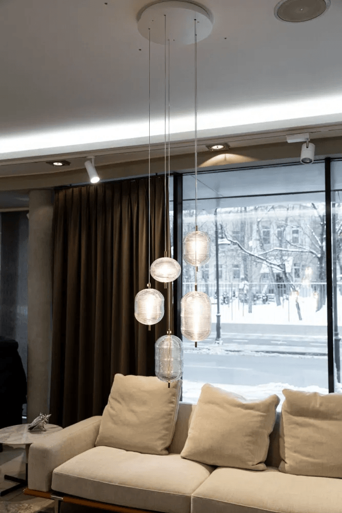 Одним из главных достоинств светильника является использование богемского хрусталя, который придаёт ему особую ценность и элегантность. Хрусталь, с его прозрачностью, блеском и изысканной игрой света, становится настоящим украшением интерьера, создавая неповторимую атмосферу и наполняя пространство мягким, но при этом ярким светом. Свет, проходящий через хрустальные элементы, играет с тенями, придавая интерьеру глубину и динамику.