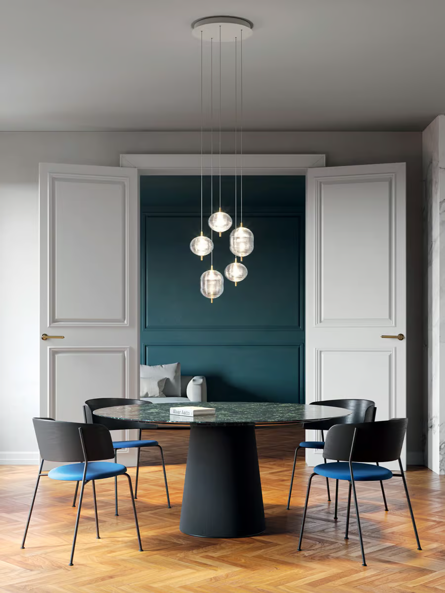 Подвесной светильник Jefferson — это не просто осветительный прибор, а настоящее произведение искусства, созданное талантливым дизайнером Лукой Никетто. Он сочетает в себе изысканность и функциональность, вдохновляя на ассоциации с музыкой и психоделическим искусством шестидесятых годов. Этот светильник напоминает о ярких и эмоциональных образах той эпохи, создавая атмосферу, наполненную ностальгией и творческим вдохновением.