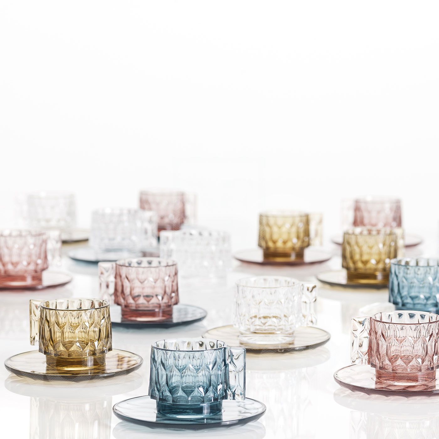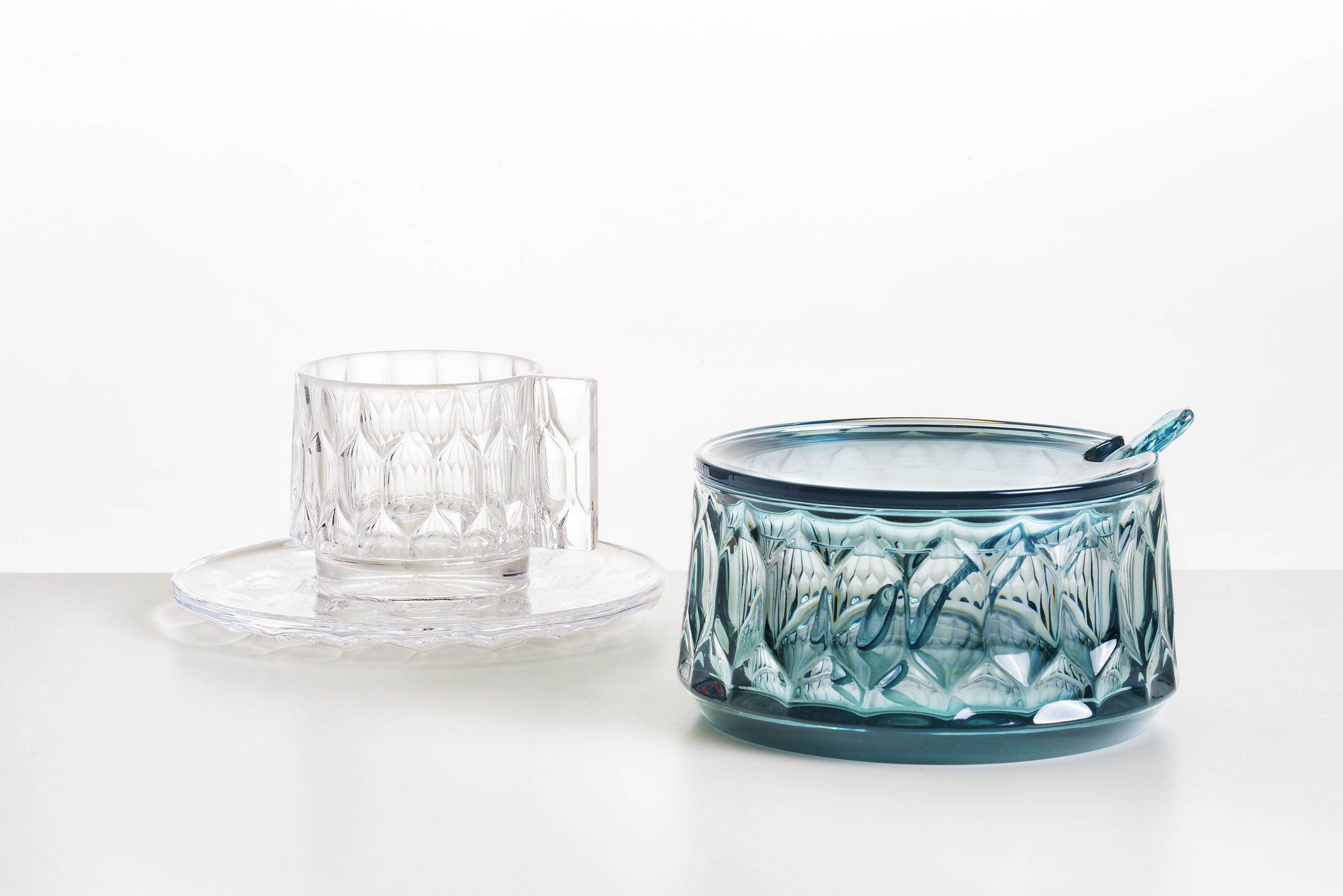 Коллекция посуды Jellies Family в 2018 году пополнилась кофейным набором и сахарницей. Кофейный набор Jellies Family состоит из чашки, ложки и тарелки. Он изготавливается из технополимера в четырех вариантах цвета: коричневый, прозрачный, голубой или розовый. Подробнее о данной модели уточняйте у менеджеров или в PDF инструкции.nn