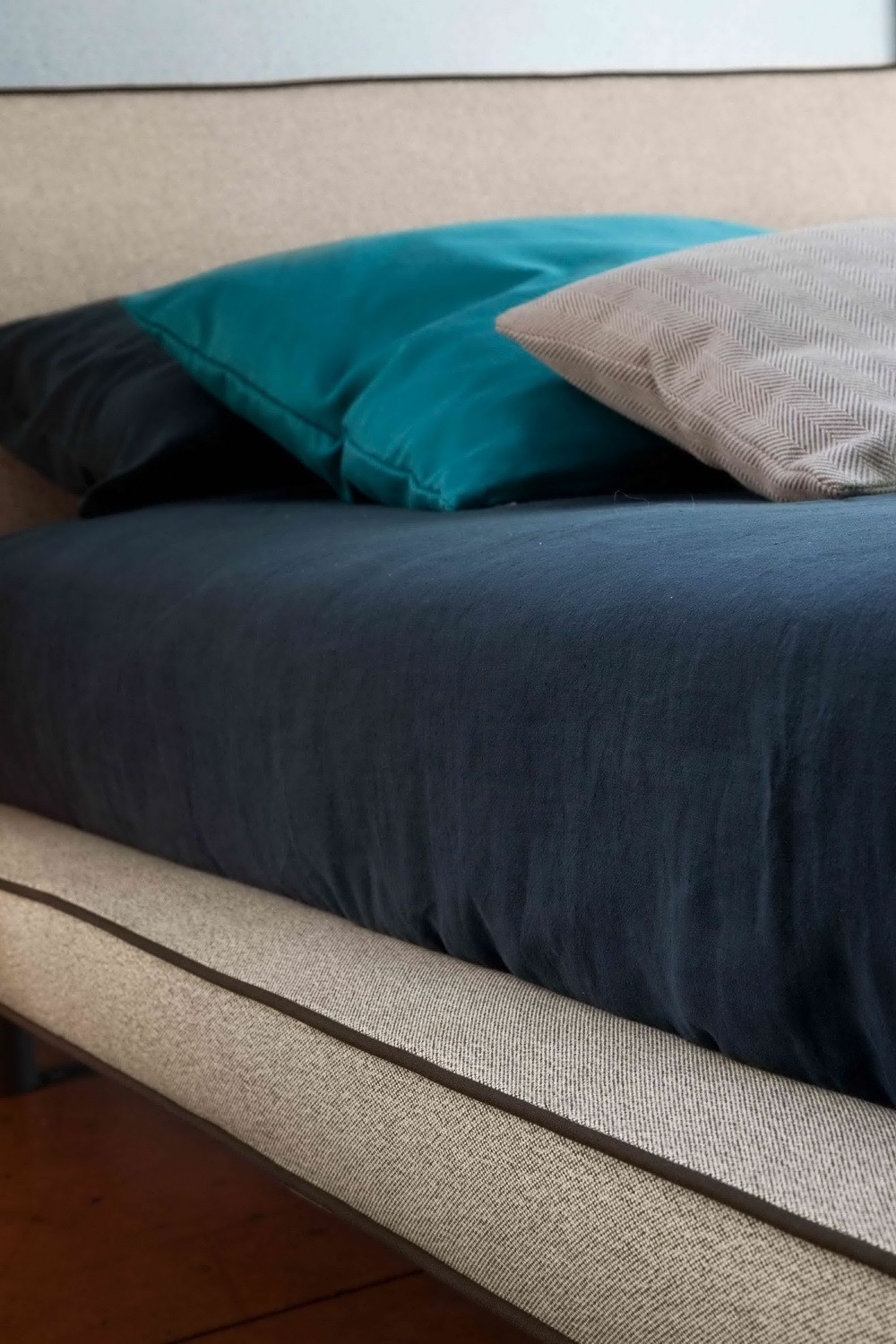 Joe — дизайнерская двуспальная кровать на деревянном каркасе и металлических ножках. Модель с лёгкостью впишется в интерьер современной спальни благодаря изящному внешнему виду. Обивка кровати доступна в различных цветовых вариантах и может быть выполнена из текстиля (съемная), натуральной или искусственной кожи. Модель представлена в нескольких размерах и может быть выполнена с отделкой из стеганой ткани и высоким изголовьем (Joe Ego). Более подробную информацию можно уточнить у менеджера.