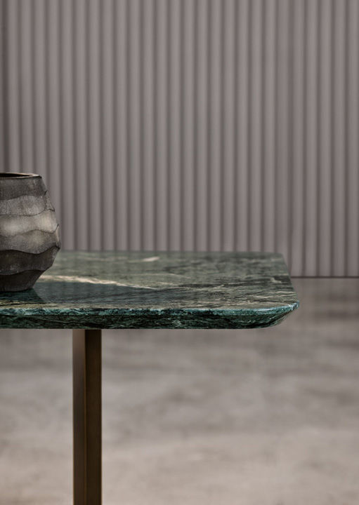 Основание столика Joy изготавливается из прочного металла, покрытого лаком. Квадратная столешница выполнена из качественного мрамора в зеленом оттенке. Доступно два вида столешницы: круглая или квадратная. Подробнее уточняйте у менеджеров или в PDF инструкции.