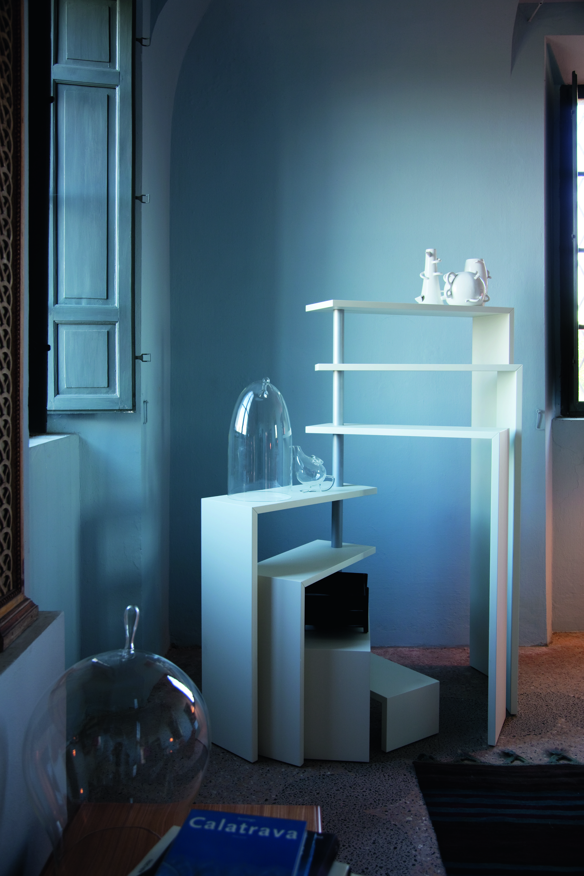 Стеллаж Joy с удобными вращающимися полками. Материал полок — сотовые конструкции, укрепленные изнутри стальной опорой. Опора бывает окрашена в двух вариантах: белый или черный цвет. Стеллаж доступен с пятью или с семью полками. Подробнее уточняйте у менеджеров или в PDF инструкции.