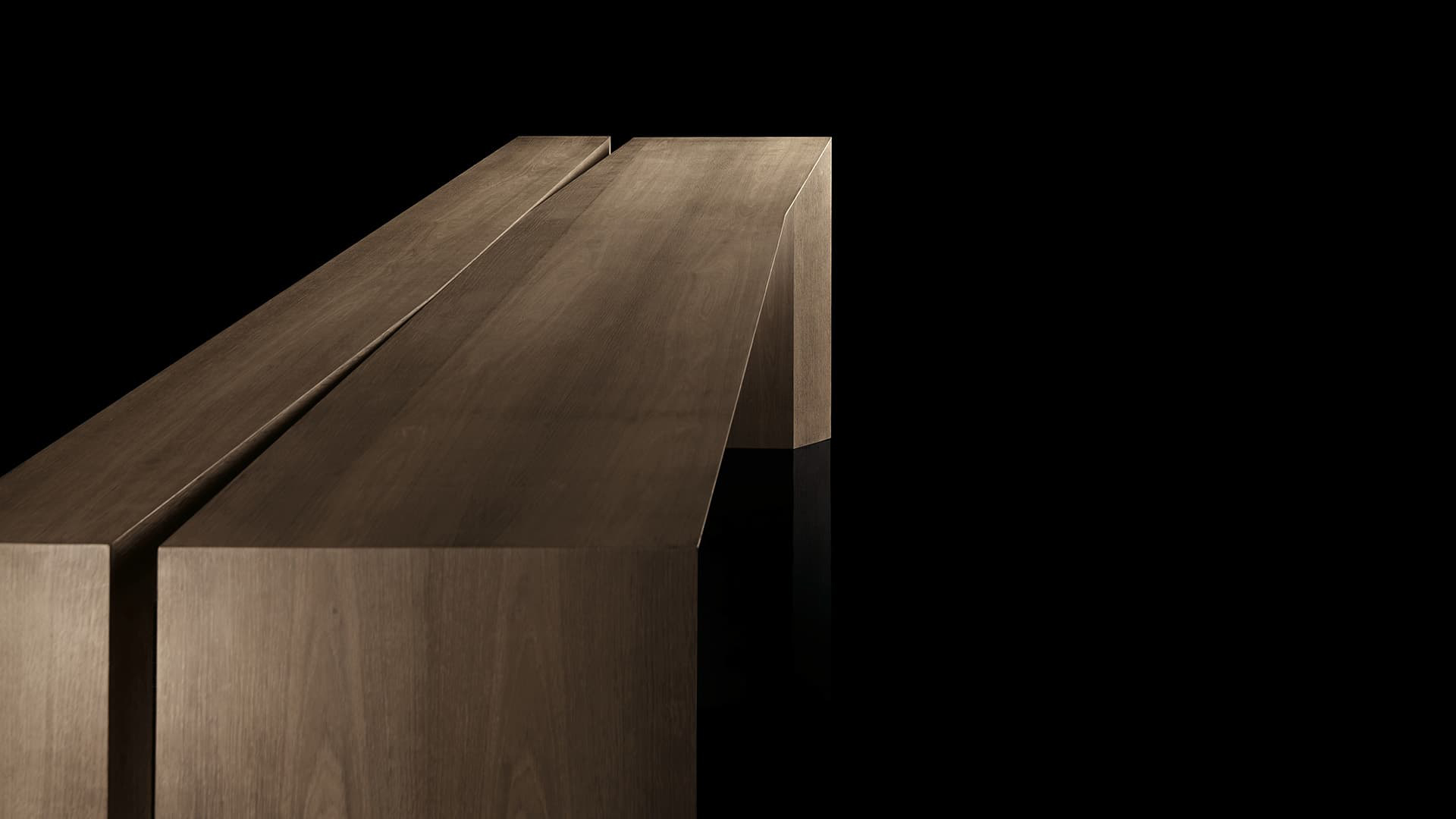 Основой стола служит фанера толщиной 8 см с углами, выполненными под углом 45°. Такая конструкция придаёт столу не только особую прочность, но и геометрическую чёткость, делая его визуально выразительным и устойчивым.