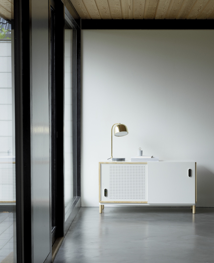 Kabino — это стильный и практичный комод, сочетает лакированную МДФ-панель, раму из ясеня спереди и матовые алюминиевые фасады, что делает его универсальным решением как для дома, так и для офиса или студии.
