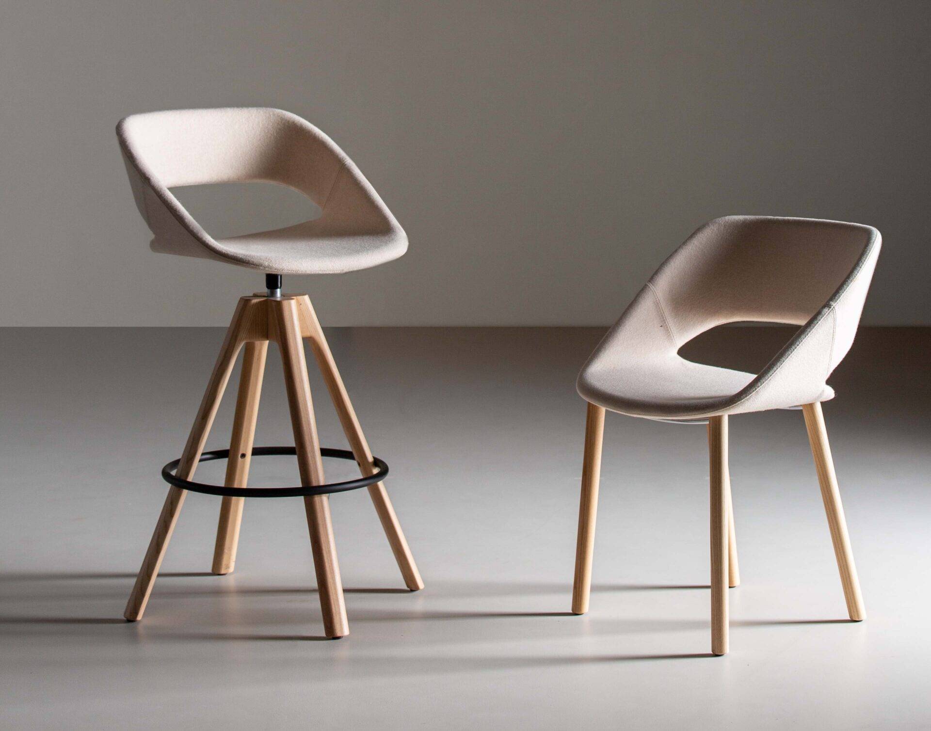 Основой корпуса стульев Kabira является ясеневая фанера. Затем она обтягивается тканью, кожей или экокожей. Это позволяет адаптировать стулья под индивидуальные предпочтения. Кроме того, предлагается широкий выбор каркасов. Это делает коллекцию Kabira универсальной. Она подходит для самых разных помещений. Стулья можно индивидуально сконфигурировать с менеджером. Для этого можно позвонить по телефону или написать на почту или в мессенджер.