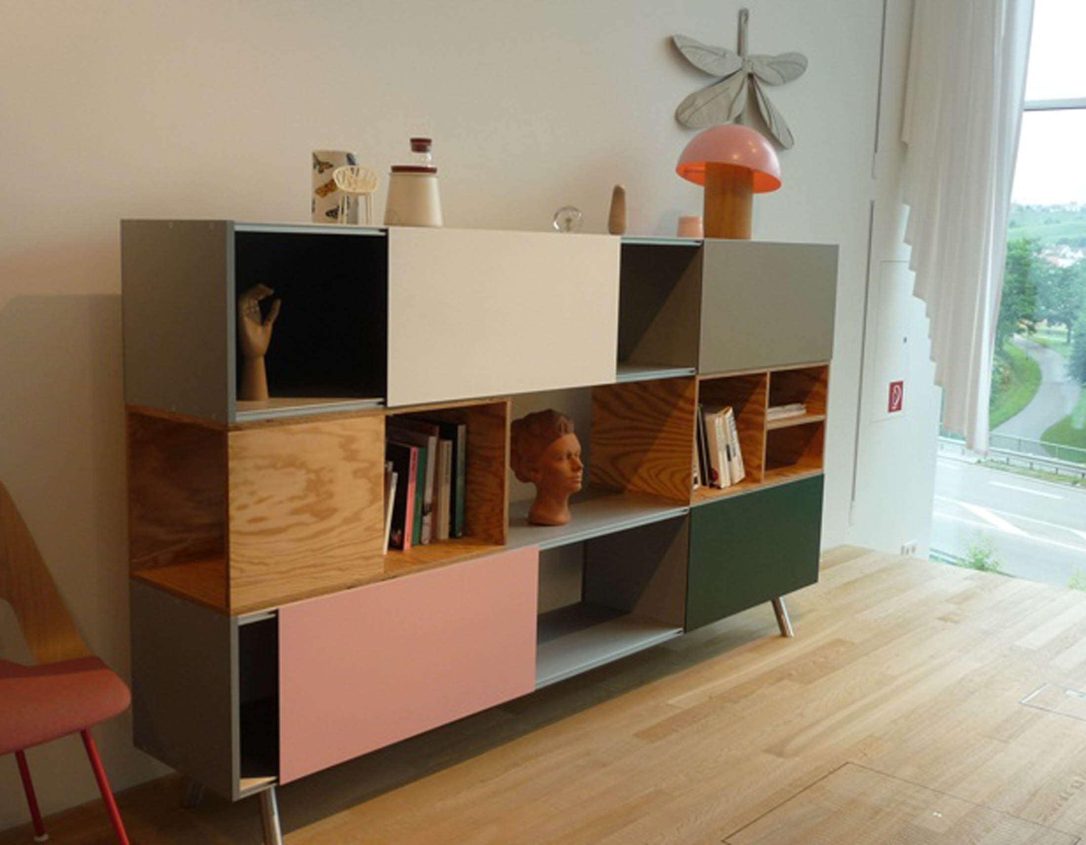 Стеллаж Kast выполнен в современном стиле. Изделие изготовлено МДФ. Полки, сдвижные дверцы и устойчивые ножки стеллажа изготавливаются из алюминия. Модель имеет вытянутую прямоугольную форму. Стеллаж производится в нескольких размерах. Более подробную информацию можно уточнить у менеджера.