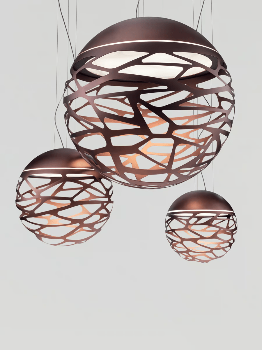 Даже будучи выключенным, светильник Kelly Sphere притягивает взгляд благодаря своему оригинальному графическому дизайну. Его форма и линии создают интересный визуальный эффект, который выступает не просто как источник света, а как декоративный элемент интерьера.