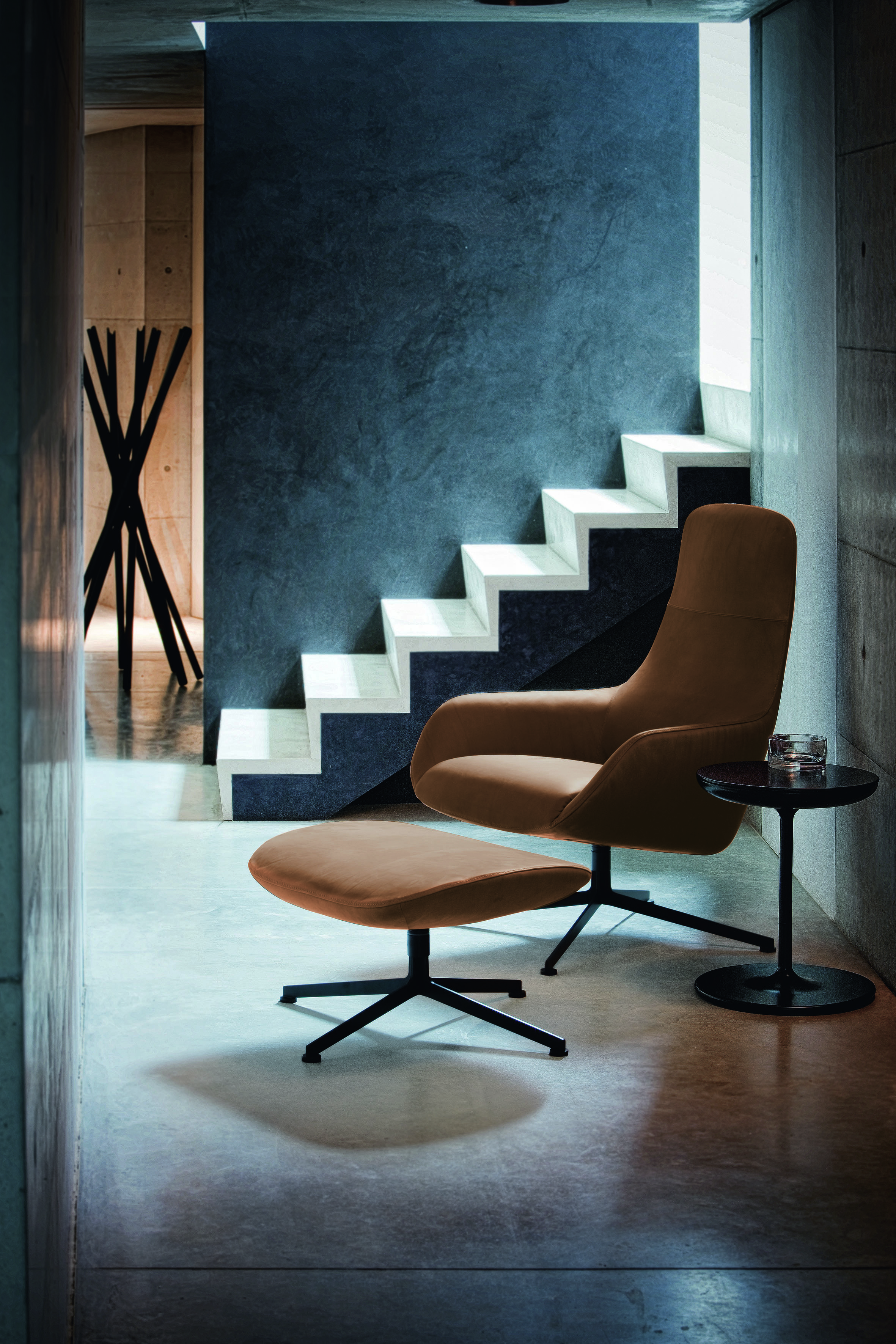 Пуф Kent 896/p от дизайнеров Роберто и Людовики Паломбо (Roberto Palomba, Ludovica Palomba) имеет поворотный каркас из стали и наполнение из полиэстера. Обивка может быть выполнена из ткани или кожи различных цветов и категорий. Пуф идеально дополняет кресло Kent 896.