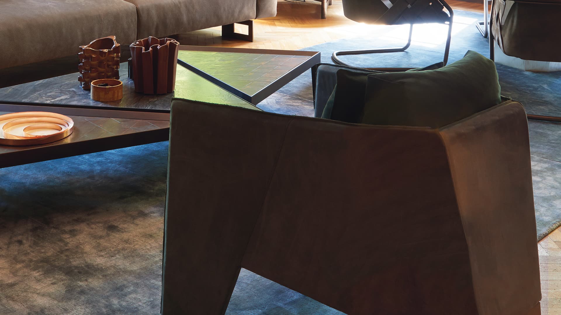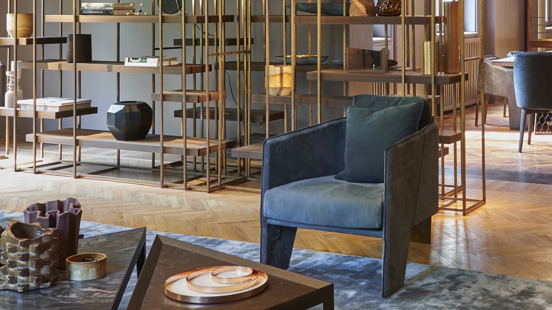 Но главная особенность Ketch – задняя ножка из полированной латуни. Этот сияющий элемент придаёт дизайну лёгкую театральность, превращая кресло в самостоятельное произведение искусства.
