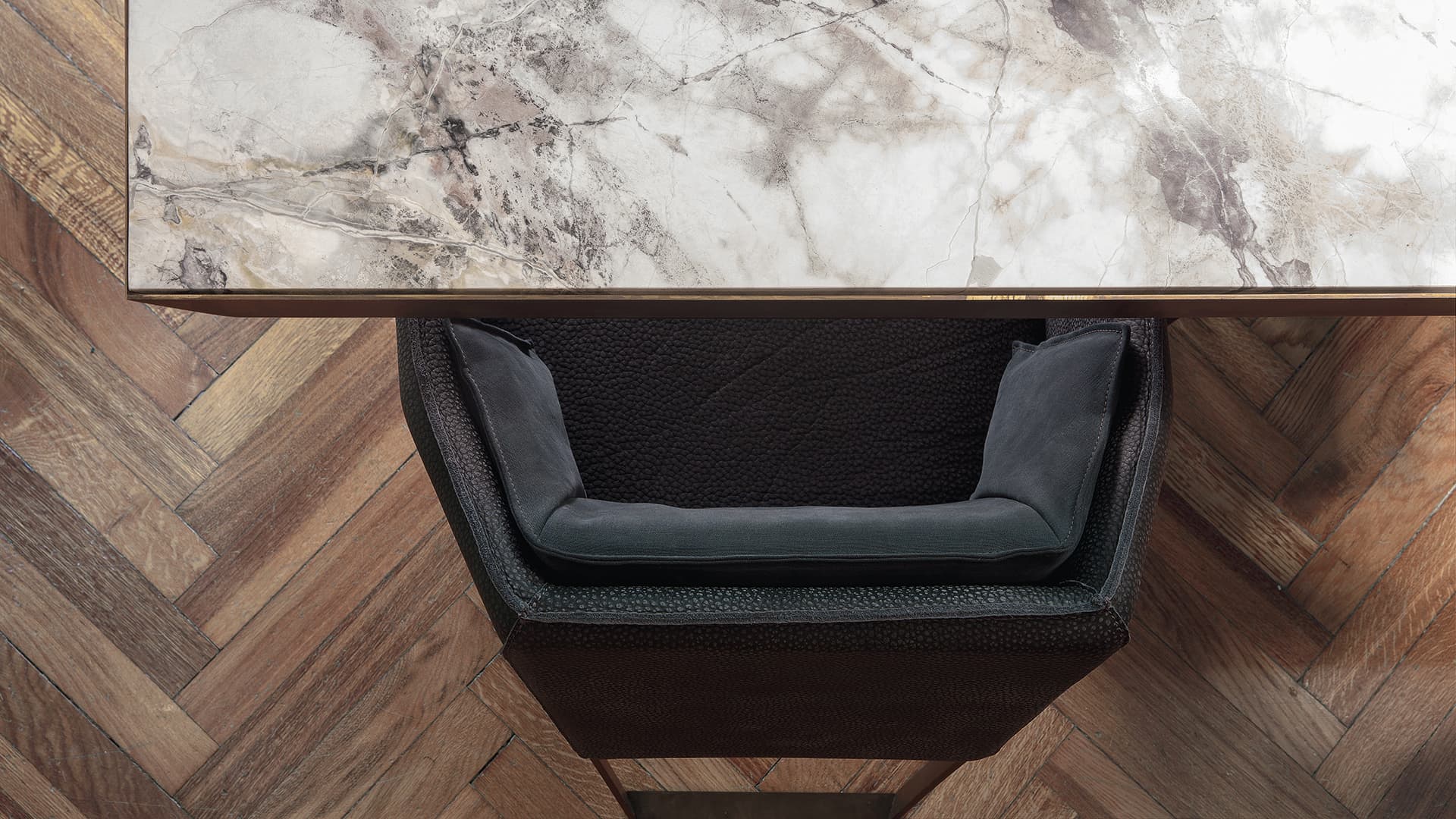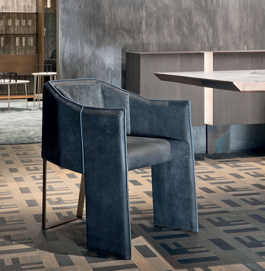 Рама стула изготовленная из фанеры, обработанной вручную, придаёт изделию неповторимый шарм и уникальность. Фанера тщательно отбирается и обрабатывается, чтобы подчеркнуть её естественную текстуру и создать гармоничный образ. Поверхность рамы обтянута высококачественной кожей, которая не только придаёт стулу элегантный вид, но и обеспечивает его прочность и долговечность. Кожа отличается высокой износостойкостью, что гарантирует сохранение первоначального вида стула на долгие годы.