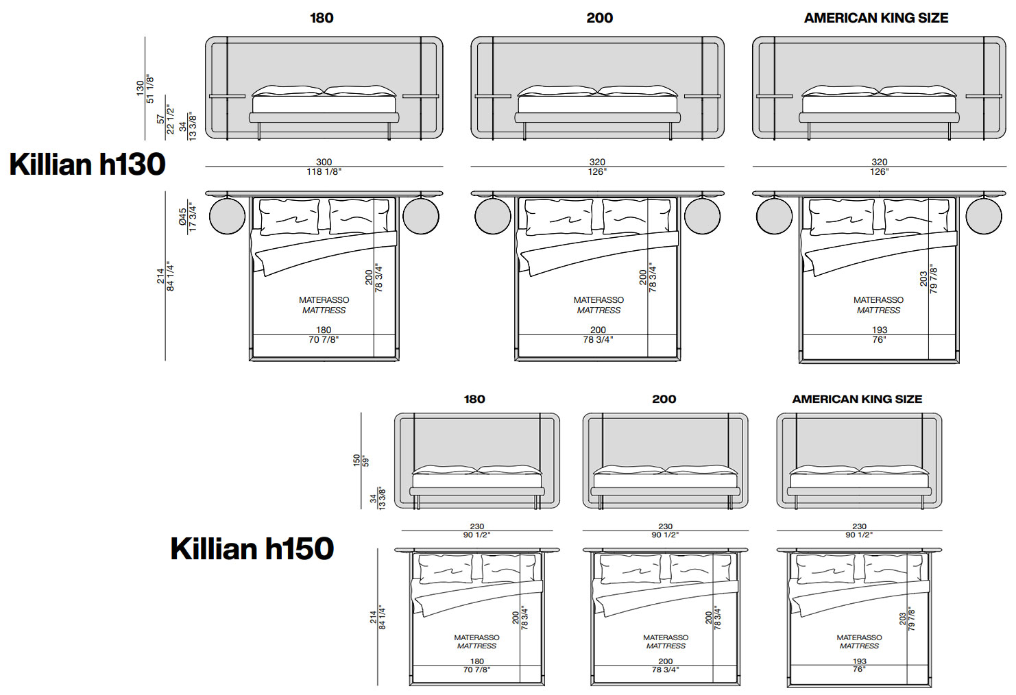 Изголовье кровати Killian доступно в двух вариантах высоты. Это позволяет выбрать наиболее подходящий вариант в зависимости от стиля спальни. Оно может быть выполнено на заказ с отделкой из различных материалов. Варианты включают натуральные ткани и высококачественную кожу. Благодаря этому, изголовье прочное и долговечное. Оно также мягкое, обеспечивая дополнительный комфорт и уют.