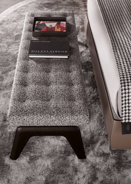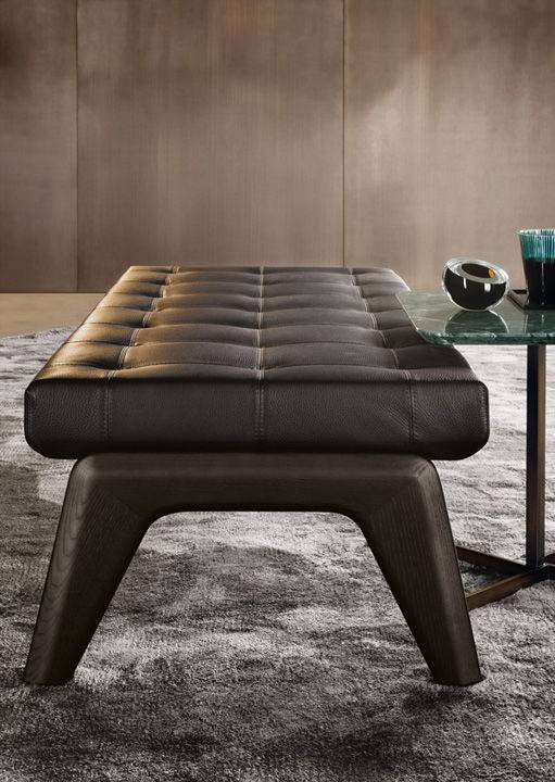 Коллекция Kirk от бренда Minotti включает в себя разнообразную мебель для гостиных. Каркас скамейки Kirk изготавливается из натуральной древесины. Мягкая часть наполняется пенополиуретаном. Основание покрывается лаком. Для обивки применяется кожа или ткань любой доступной расцветки.