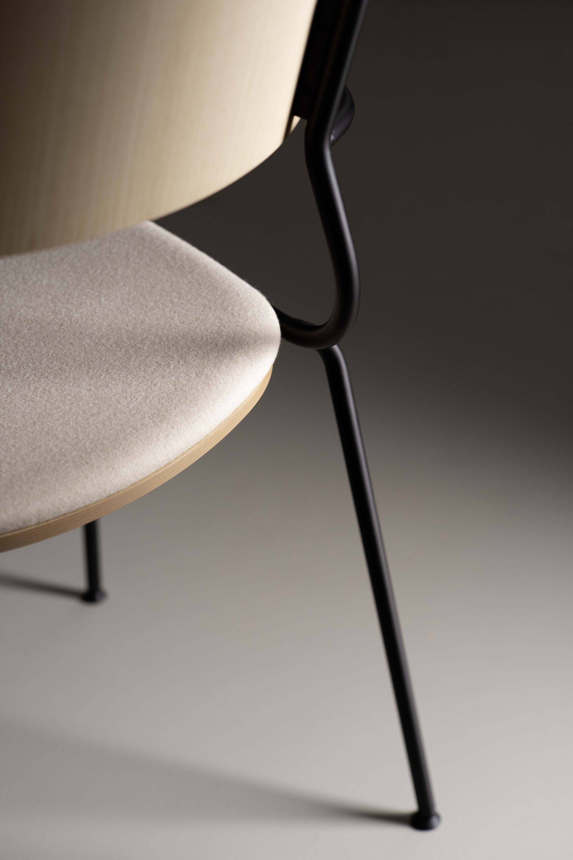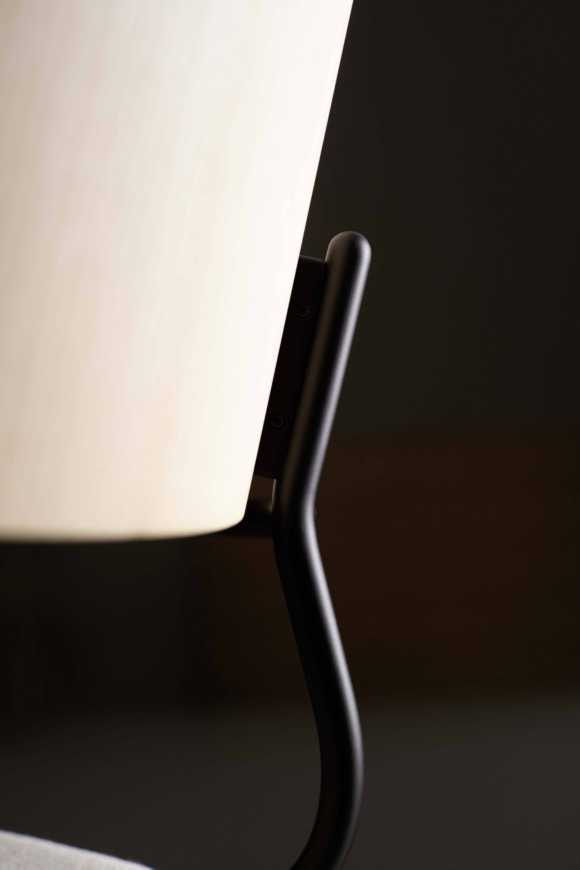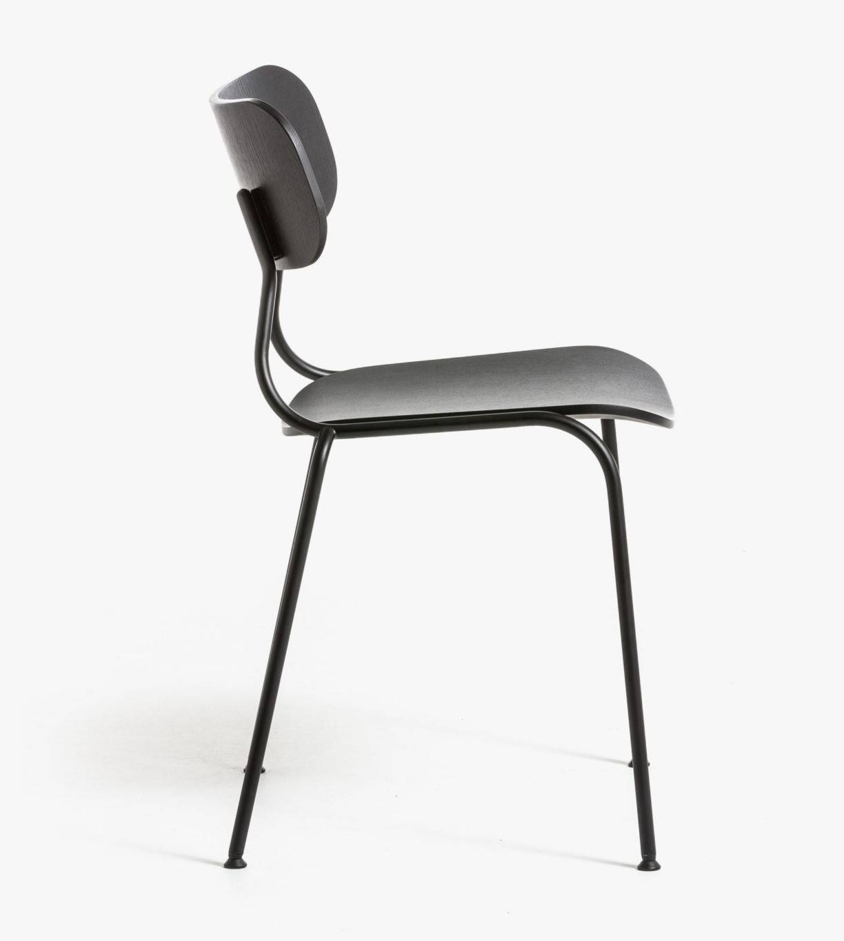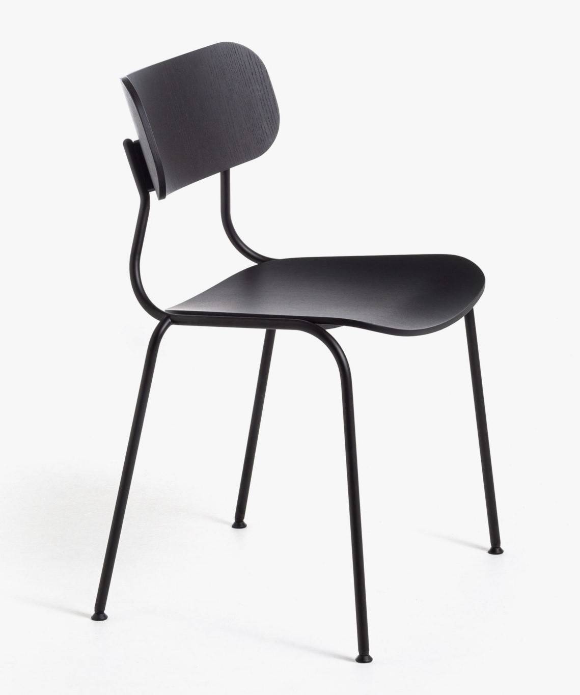 Основой каждого стула Kiyumi служит изогнутый каркас из стальных труб, обеспечивающий прочность и устойчивость конструкции. К этому каркасу крепятся сиденье и спинка, выполненные из окрашенной или лакированной фанеры с открытыми порами, облицованной шпоном ясеня. Такое сочетание материалов придает стулу не только эстетическую привлекательность, но и долговечность, делая его устойчивым к износу и внешним воздействиям.