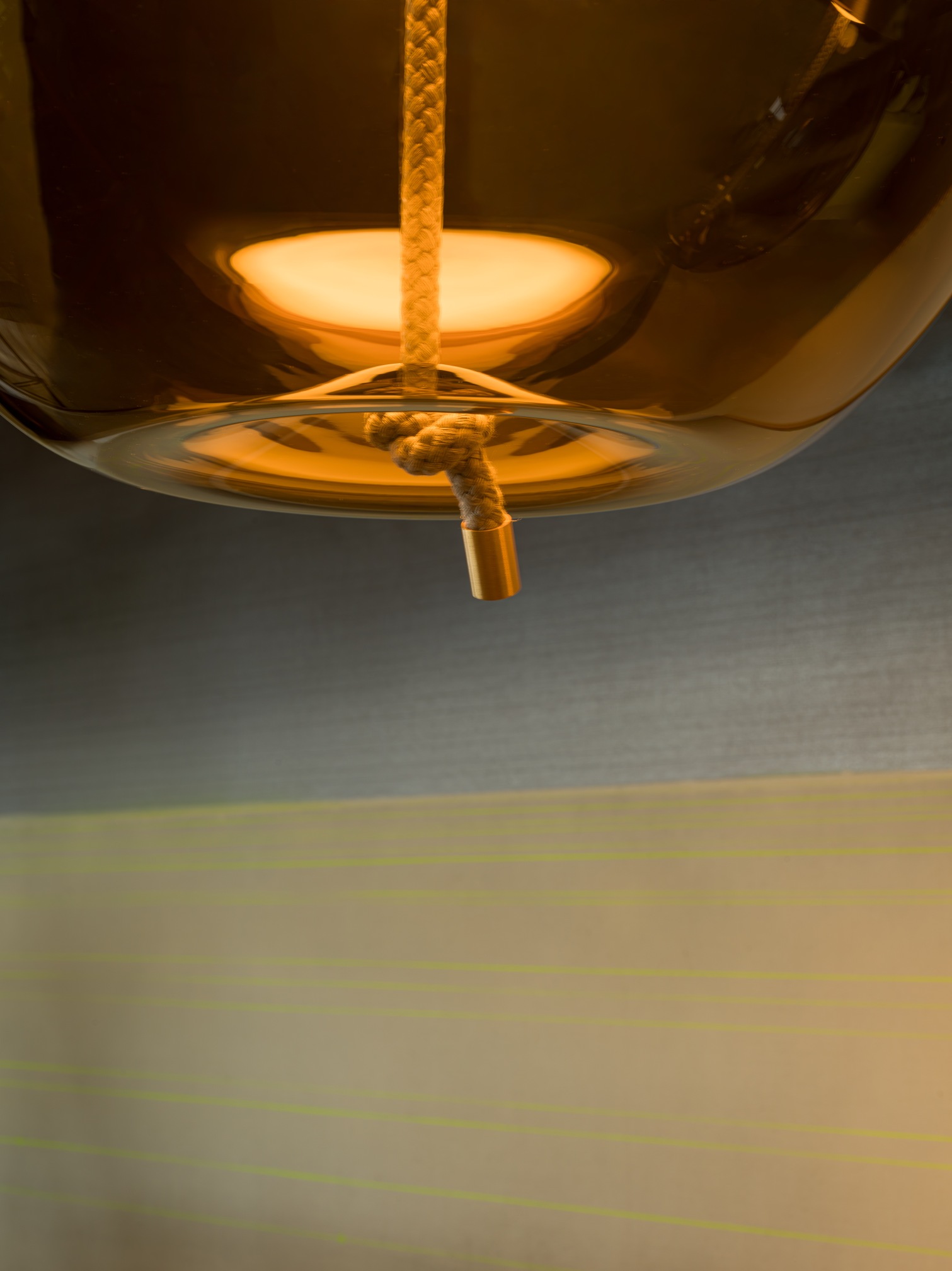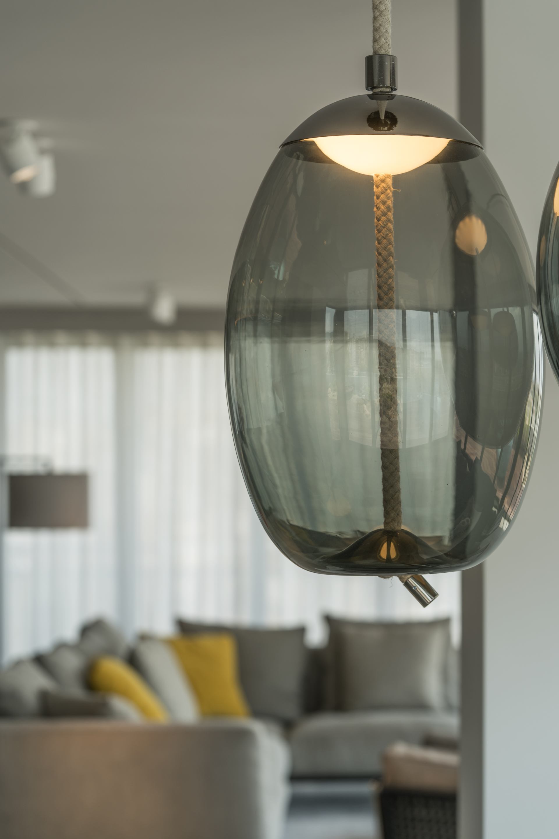 Подвесной светильник Knot Uovo представляет собой величественное осветительное устройство, в котором искусно сочетаются два контрастных материала. Дизайн светильника включает в себя грубое натуральное волокно и гладкое, прозрачное выдувное стекло. Этот контраст создаёт образ, который одновременно поражает и придаёт благородство интерьеру.