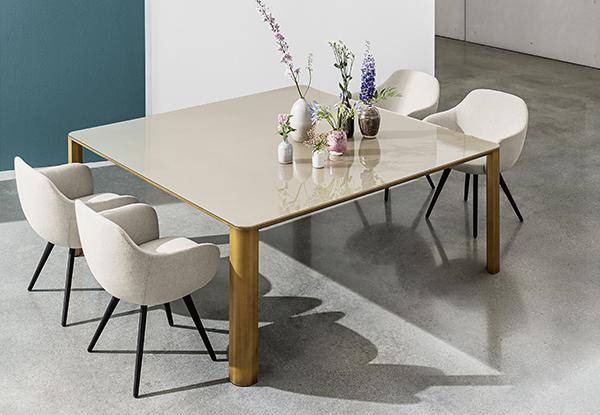Kodo — это большие и практичные обеденные столы, которые доступны в нескольких размерах. Ножки выполняются из алюминия и покрываются лаком в различных цветах. Столешница изготавливается из стекла или керамики в различной отделке. Стол доступен в прямоугольной или квадратной форме. Детали о данной модели уточняйте у менеджеров или в PDF инструкции.