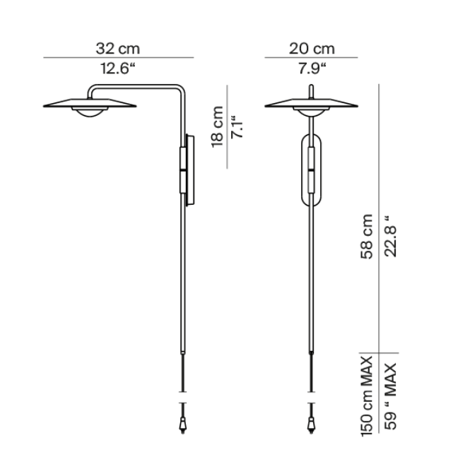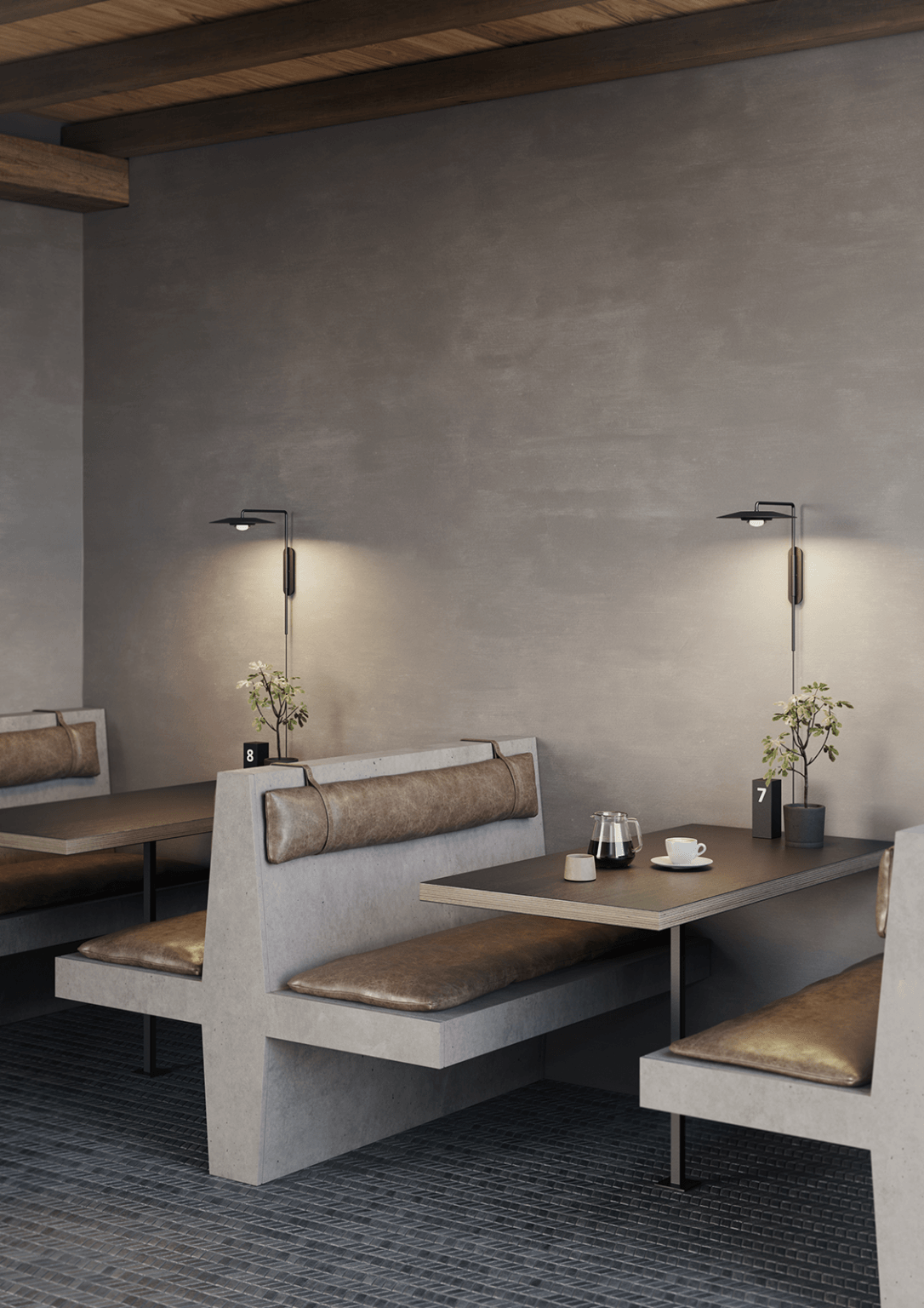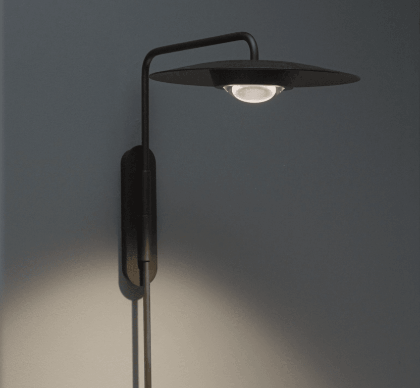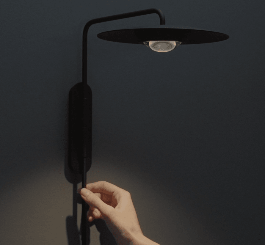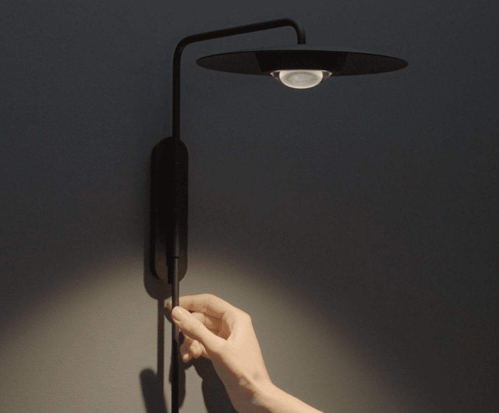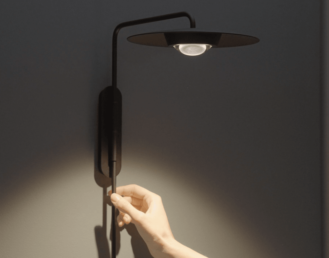 Дизайн Koine Wall отличается лаконичностью и минимализмом. Изящный стержень диаметром всего 8 мм легко крепится к стене с помощью специальной конической опоры для отражателя диаметром 20 см. Этот элемент придаёт светильнику динамичность и визуально привлекает внимание.