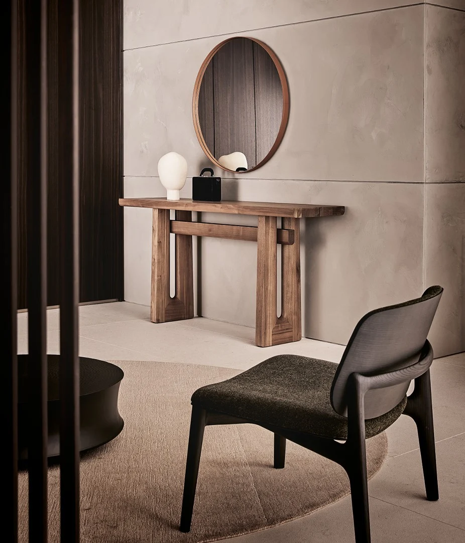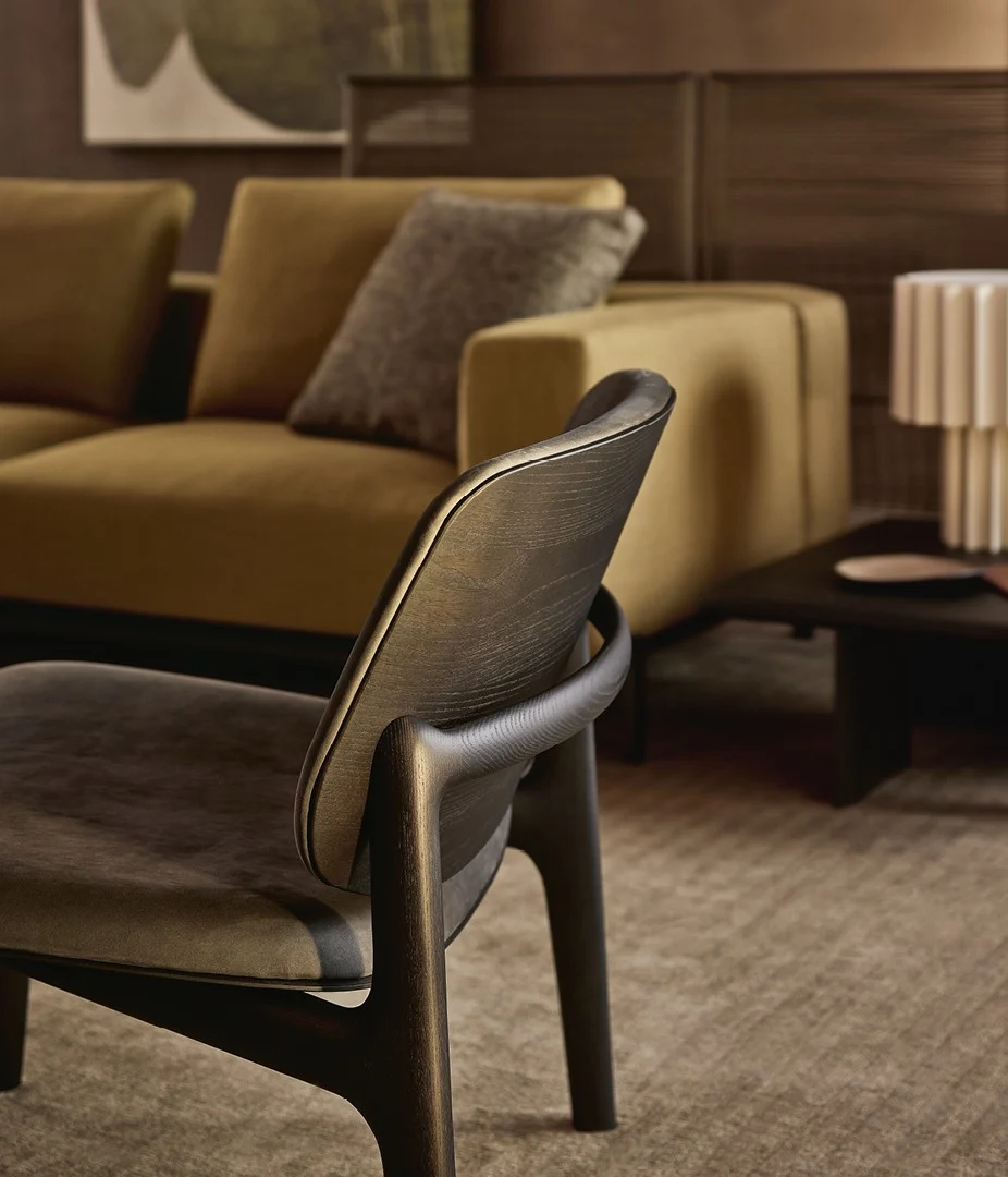 Кресло Curve отражает философию сдержанной элегантности, где плавные формы и натуральные материалы создают ощущение тепла и уюта. Вдохновляясь эстетикой одноименной коллекции, дизайнер Эммануэль Галлина добился идеального баланса между легкостью конструкции и комфортом, сохранив мягкие очертания, но освободив их от излишней массивности.