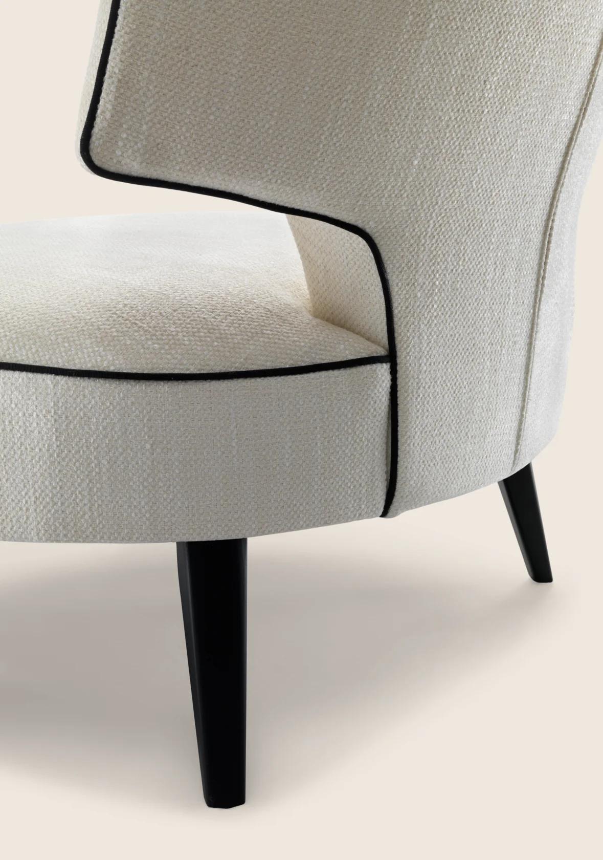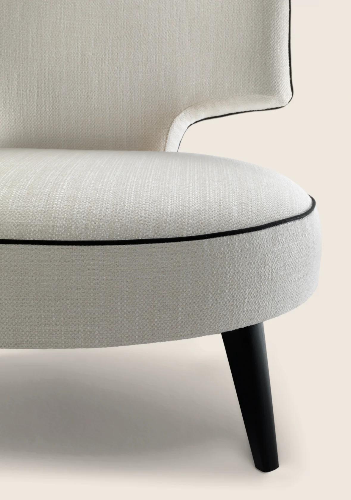 Кресло опирается на элегантные ножки. Они могут быть выполнены из литого алюминия или массива дерева. Оба варианта выглядят изысканно. Кроме того, они предлагаются с различной отделкой. Это позволяет подобрать модель под любой стиль интерьера.