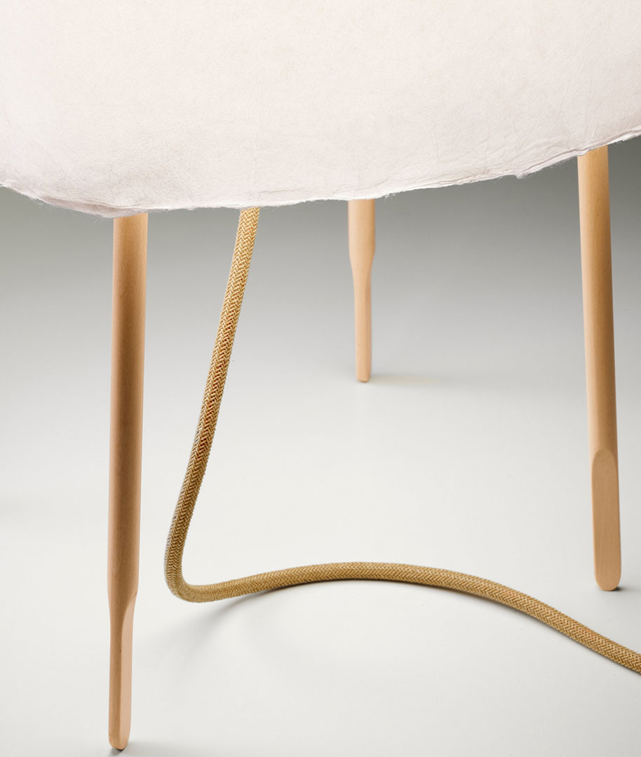 Настольная лампа Kurage — это ода японской эстетике, материальности и тихому, созерцательному свету. Её дизайн построен на минималистичном и выразительном сочетании двух природных материалов, доведенных до совершенства традиционным мастерством. Основание лампы представляет собой геометричный каркас из тонких, точёных ножек изготовленных из цельного дерева. Эта древесина ценится за свою упругую прочность, красивую текстуру и долговечность, придавая конструкции визуальную лёгкость и стабильность. Центральным элементом является плафон конической или цилиндрической формы, выполненный из специальной бумаги. При включении бумажный плафон преобразует точечный источник света в объемное, теплое и абсолютно безбликовое свечение. Свет становится осязаемым и мягким, заполняя пространство умиротворяющей атмосферой, характерной для традиционных японских интерьеров. Лампа создаёт комфортную локальную подсветку, идеальную для чтения, отдыха или создания камерной, медитативной обстановки.